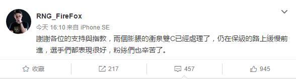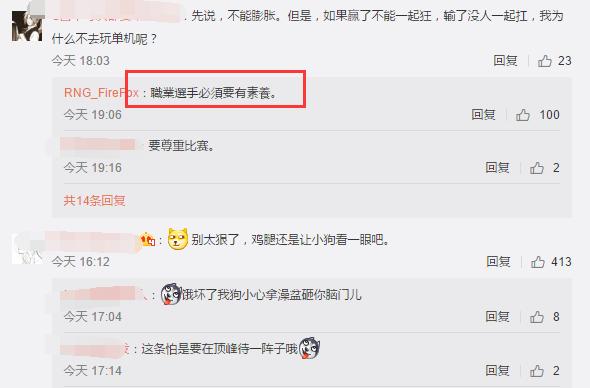在3月12日LPL夏季赛比赛中,近期风头正盛的全华班战队RNG一2:0的比分势如破竹的击败了NB,此战获胜的RNG已取得了春季赛场上7连胜的喜人成绩。由于获得了这样的好成绩,RNG战队的粉丝和选手们都非常兴奋。 由于两场比赛都一边倒的被RNG主宰节奏,因此队员们在比赛时多少都有些膨胀。就在第二局RNG即将拆掉NB基地水晶时,杀意已决的RNG双C小虎、Uzi双双交闪冲泉水企图击杀无状态,尴尬的是不仅没有成功杀掉无状态,Uzi反而被无状态击杀。 对于一场毫无悬念的比赛来说,这似乎是个不起眼的小插曲,但RNG主教练风哥却因为这件事不高兴了。 随后风哥的表现并没有辜负他“LPL最严格教练”的称呼,赛后不久他便在自己的微博中发布了新动态,表示上头冲泉的双C已经“被处理了”。 对风哥的这次处理不少网友表示有些过了,认为这样的行为只是选手一时兴起,没有必要“上纲上线”。对此风哥表示:职业选手必须要有素养。 最后小编想说的是,职业选手因为“虐泉”行为遭到处罚还是第一次见到,不过RNG主教练这样的做法也证明了目前LPL的风气正在逐渐变好,相信日后的LPL必定会带给我们更多惊喜。不知这次双C冲泉遭处罚一事,各位观众老爷怎么看? |