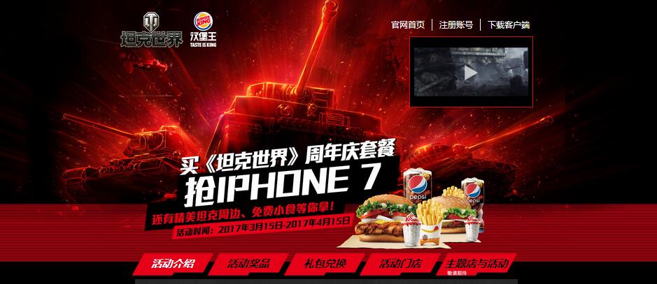 六年前,我们第一次如此近距离的接触到了如此真实而又震撼的坦克对战,呼啸而过的炮火,钢铁崩碎的烈焰,都仿佛近在咫尺,令人窒息。我们在那一天,开始有了一个共同的名字:WOTer! 就在今天!《坦克世界》国服六周年庆典盛大启幕!百万豪礼,只为最懂坦克的你! 【大礼六重奏 收集《坦克世界》六周年礼包拼图拿取终极大奖!】 在六周年庆期间,我们为大家准备了多重的丰厚游戏礼包!从官网到社区再到游戏媒体,海量补给和金币坦克限时相送!领取各类丰厚礼包之余,都会得到相应拼图,收集拼图完成六周年任务,即可参与抽奖赢取最终的神秘大礼,黄金59 ,T95酋长,VK7201,WZ-111T等几乎所有顶级稀有金币车大放送 !真正的惊喜,在这里等你! 【《坦克世界》汉堡王跨界合作iPhone7大奖无脑送!】 作为《坦克世界》六周年系列庆典活动中的重要一环,《坦克世界》与汉堡王携手将整个庆典推向高潮!从2017年3月15日起,在华北地区167家指定汉堡王门店购买任一款《坦克世界》定制套餐,即可领取刮刮卡参与抽奖,中奖率100%,包括iPhone 7、游戏周边、游戏礼包、小吃兑换券在内总价值260万的豪华大礼只等你来! 【精彩线下主题活动 跨界牵手狂欢嗨不停】 除了线上的百万游戏礼包和顶级外设外, 《坦克世界》还将在举办北京地区的《坦克世界》战友汉堡王主题派对,一起吃汉堡打坦克!此外,《坦克世界》汉堡王主题门店也将于近日重装登陆,敬请期待! 【关于《坦克世界》】 《坦克世界》是由白俄罗斯战争游戏研发公司Wargaming出品,空中网在中国大陆独家运营,集坦克养成、射击对战、竞技和策略等众多特色于一身的第三人称多人在线竞技类网游。 关注微信《战争三部曲》即可快捷了解《坦克世界》、《战舰世界》、《战机世界》相关信息,每天都有精彩内容让你好看,每日签到就有机会得到精美礼品,打开手机扫一扫,马上订阅《战争三部曲》微信公众账号领取礼品。 了解更多相关信息,请前往http://wot.yzz.cn/ |