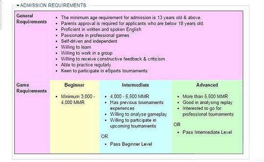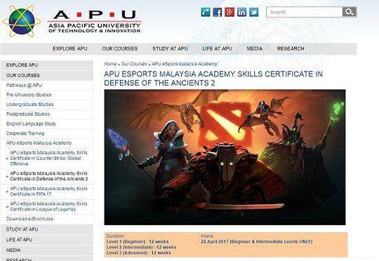 随着电子竞技行业兴起,已经有部分高校表现出了对这一行业的重视并开设了电竞专业。近日,马来西亚的亚太科技大学旗下电子竞技专业已经正式开始招生。 在学校的官网上,现在已经开始开放了申请页面。整个电竞专业包括四个方向,分别是Dota2、CS:GO、英雄联盟、FIFA17。课程时长均为12周。每个方向都分为三个级别:初级班、中级班、高级班。每个级别的招生条件不同,而且看起来还是有一定门槛的。 以Dota2为例,初级班要求天梯分在3000到4000之间;中级班要求在4000到5000之间,同时还要有锦标赛经验,愿意分析游戏玩法,愿意参加比赛;高级班则要求天梯分在5500以上。 而英雄联盟三个级别的门槛分别是黄金5以下、黄金5到白金5、白金5以上。其他游戏也分别有着各自的门槛。 学校对这些课程的目标这样描述是:发展基本技能,建立和加强对游戏知识的理解,改善个人游戏风格,训练游戏感官反应,发展团队写作能力和职业道德运动精神,发展一系列软技能,比如领导力、坚持的态度、批判性思维、决策能力、解决问题能力、沟通能力等。 |