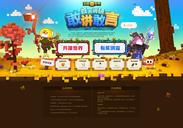 我的世界我来造! 360游戏代理的沙盒RPG网游《宝藏世界》创造首测今日震颤开启! 相信由研发商Trion Worlds打造《时空裂痕(RIFT)》与《反抗军(Defiance)》系列游戏至令还深受玩家爱戴。这次由他们历经长达两年的打造的像素风格泥沙盒游戏《宝藏世界》依然不会让你失望。该游戏降低了沙盒游戏的上手难度,并融入了丰富的RPG引导元素,自由度极高,堪称沙盒游戏匠心之作。该作品于今日以全新的形式重磅降临中国大陆地区,全方位体验这款充满新奇和冒险的沙盒网游就在今日。 测试开启时间为:3月27日12:00至4月16日23:59 360游戏为迎合《宝藏世界》玩家特点,充分提供更高效更实用的玩家互动通路,特别推出“技术大师招募”专区活动。无论是什么形式的《宝藏世界》创作,同人漫画、建筑景观、摄影拍照、COS装扮、手工制作,都可以通过活动专区提供的方式提供作品。届时游戏VIP帐号、公测限定坐骑、混乱宝箱诚意奉送。本活动长期有效。 此外,为配合本次测试收集到更多来自玩家的一手资料,360游戏还开通了“首测调研敢讲敢言”活动专区。在整个删档测试期间,玩家可随时随地将游戏BUG、建议感言通过专题活动提交。参加本次活动的玩家将直接获得下次测试的免预约特权。当然咯,同样还有时尚手机、逆天摄像头、安全路由器、游戏礼包等丰厚奖品等候领取。 怎么样?以上内容有没有吊足你的胃口!那么《宝藏世界》到底是怎样的世界呢?下面的内容将让你更加清晰。 【沙盒与RPG完美结合 让自由带路无限可能等你创造】 众所周知传统沙盒游戏,是自由与开放的代表。而RPG与沙盒游戏的结合,将由《宝藏世界》来告诉你这个新世界的样子。随机生成的地图让世界告别一成不变,因为你的存在而精彩;11种不同职业,脸可以捏、衣服可以做,这里不会有撞衫和明星脸,你就是独一无二的你;冒险区域不再定点,打怪全靠随机;想揍BOSS捡个好装备?请先建个门进去再说!这里不再是那个烦闷枯燥的世界;这里的世界需要头脑超级发达四肢并不简单的你;这里的“世界”注定颠覆你的“观”! 【VR视野360度无死角呈现 现在未来任你掌控】 随着科技的与时俱进,越来越多的网游开始在游戏技术方面进行更深层的拓展。为了打造最真实的交互体验,《宝藏世界》在游戏中也融入了创新的VR元素,让玩家沉浸在游戏所设定的环境当中,你可以创造任何你想要的东西,比如西方远古的巨龙,中国神话中的饕餮,亦或者把自己打扮成Super Star都完全不在话下。没有人能阻止你的奇思广义,在游戏中你可以尽情发挥你的想象,创造你想要的世界。 【千万级沙盒巨制网游 开启多人建造冒险乐趣】 由360游戏独家代理运营的《宝藏世界》,是一款由Trion Worlds研发的像素风格沙盒游戏。在全球有着数亿的沙盒爱好者,然而能够满足他们兴趣的游戏却少之又少,源自于对沙盒游戏的无限热爱,Trion Worlds立志要为全球的沙盒爱好者们带来一款真正的网络沙盒游戏——《宝藏世界》。在没有任何同类游戏可以对比借鉴的情况下,创造一款沙盒类游戏实属艰难,然而凭借着坚定的信念和数以万次的失败和改进,最终《宝藏世界》破壳而出,并成功到达中国大陆!在这里,你不再是一个人孤单奋战,而是和一群志同道合的伙伴们汇聚一堂,创造一个属于你们的恢宏震撼的虚拟世界! 介绍了以上这么多,相信早已下载好客户端只等开服的你已然对本次测试的所有大小福利胸中有竹了。就在今天,游戏里不见不散! 关于《宝藏世界》: 《宝藏世界》拥有沙盒游戏的领先经典玩法,同时结合创新的自由建造和无限制冒险两种模式,首次将PVP、PVE玩法引入沙盒游戏。《宝藏世界》目前拥有11种多元化职业,12种生存环境,主打自由世界的理念。玩家个体自成一个世界,家园系统支持自由建造,将天马行空的想象变为现实产物。玩家可以自由穿梭于不同的世界中,建造自己心目中的乌托邦。 了解更多相关信息,请前往http://news.yzz.cn/ku/bzsj320/ |