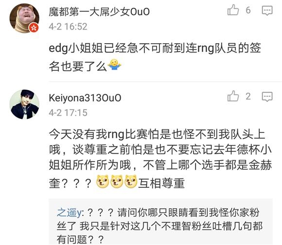 EDG小姐姐喷RNG粉没素质 最后发现是自己人