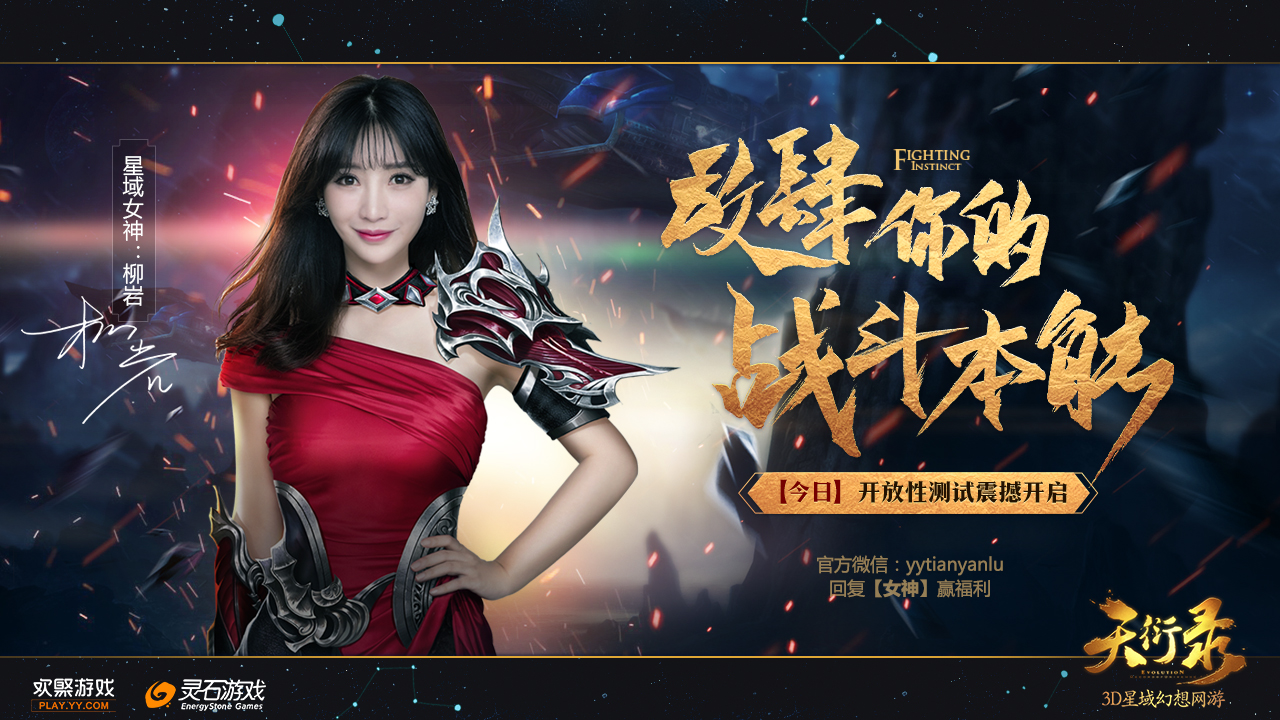 由欢聚游戏代理、灵石游戏研发的3DMMO星域幻想题材网游《天衍录》今日14:00点正式开启首次不限号不删档开放性测试,柳岩化身星域女神,唱响游戏同名主题曲,演绎燃魂战歌,并邀玩家共同探索无垠宇宙,一起参与震撼星战,放肆战斗本能!同时,还将疯狂派送绝版时装坐骑、限量周边、海量京东卡、iPhone7等超值惊喜大礼! 【柳岩陪玩闯星域 惊喜大奖送不停】 由柳岩领衔的《天衍录》同名主题曲MV今日正式曝光,激昂的旋律,唱响持续百万年的双灵星战,演绎无数种族为生存而斗战的热血!化身为星域女神的柳岩,将持枪携盾,驾星舟战舰,伴随战歌,与玩家一同激战星域,用鲜血与硝烟,踏碎亿万星河! 主题曲MV视频: 星域女神柳岩的加盟,不仅为玩家带来丰厚的福利、热血的战歌,更将今日开测之际,与玩家在游戏中来一场亲密互动!此刻,她已经创建好角色,等待着与玩家一起游戏,探索星域!发现女神本尊的玩家,还能与柳岩组队畅玩!更有机会获得女神亲自送出的神秘大礼。 【联动时空剧情 解读宏伟史诗】 无垠的天衍星域着,有着长达数百万年的星战史诗,玩家能通过游戏独创的联动时空剧情,深入的体验这场战役的震撼。穿越时间与空间,从不同的种族与历史角度,探秘战役的内幕,或是参与过去与未来的任务,改变战争因果。 更有高自由度的沙盒模式,能让玩家参与到世界PVP激战,在无尽时空的穿梭中,通过与其他玩家竞技PK,影响剧情走向,引爆吞噬星域的终极大战! 【五大星战职业 引爆星河激斗】 在天衍星域数万世纪的时间长河中,养育了无数个文明种族,由于不同的天赋及生存环境,衍化出五大星战职业:防御型虎贲、近战型骁骑、法术型气玄、远攻型云麾、治疗型愈灵,体验不同的战斗模式,更能够相互配合,默契协作,发挥出极致的队伍实力,征服所有高难度关卡与BOSS! 五大职业间,更能相互克制,展开势均力敌的PK对决,在竞技场、战场、野外厮杀等战斗中各展所长、浴血搏杀!甚至引爆大型团队混战,点燃最惨烈的战火,与兄弟携手,称霸星域! 【极限竞技操作 五星战斗来袭】 为让玩家享受星战乐趣,游戏更推出了独创的五星级战斗体系。能让玩家自由搭配技能、元素属性、符文天赋等多种预设方案,玩转百变战斗套路。更有爽快的连招、无双战技,打造极限操作战斗,浮空、击退、挑非一气呵成,体验酣畅淋漓的快感! 不仅如此,更有双击闪避、轻功模式等操作玩法,能让玩家在战斗中更加灵活自由,以娴熟的手法,玩转飘逸的走位,凭借操作,越级攻克强大的存在! 【探索无垠星空 激战三维宇宙】 浩瀚星域,是玩家尽享探索的乐土,更能在其中体验紧张刺激的冒险剧情!在各异的星球,感知鬼斧神工下的不同地貌魅力;在太空领域,体验穿梭群星的速度与激情;在星域深处,与星际海盗激战,上演星域版夺宝奇兵! 而在多维度的宇宙空间,更有无数生死激斗等待玩家去战个痛快!在星球地表,有四大竞技战场享受疯狂厮杀;在近地星河,能变身外星星域挑战MOBA对决;而在星河尽头,更有无限制的掠夺PK,激烈的混战甚至将引发数万人参与的超级星战,用宇宙级武器,将璀璨星河华为修罗地狱! 【阵营生死对决 百万军团混战】 双灵战役愈演愈烈,玩家能够加入天衍或噬灭阵营,为信仰而战!并寻找拥有共同理念的精英伙伴,组建军团,在茫茫星河中,占领星球建立家园,并以此为专属的星际要塞,开采矿藏、种植药材、修建工事,以壮大实力,筹备两大阵营的终极对决。 为进一步收集军备资源,军团间更能展开疯狂的掠夺,进行大规模的军团战役,并能以卧底、突袭、离间等多种形式,不择手段的获取胜利,玩转热血乱斗。更能在奖励丰富的军团运镖中,展开血腥屠杀,与数个军团爆发混战,抢夺巨额价值的镖车,以实力赢得所有战利品! 【七大福利席卷星域 仅限今日惊喜狂欢】 只面向今日不限号不删档测试登录游戏的玩家,现在起,只要登录游戏,即可赢取豪华大礼!开测狂欢时刻,不要错过! 【抢绝版周边】专为首次不限号测试量身定制的西伯利亚耳机、U盘、战袍等专属精美周边,只限首测期间抽取!极具收藏实用价值! 【夺神装橙宠】开测当日即可轻松穿神装、骑橙宠,以完美姿畅游大星域!错过今日,那就只能白手起家。 【抽高端外设】今日下载游戏并登陆的玩家专属福利,I7CPU、GTX1080高端显卡等顶级硬件大放送! 【赢肾七大奖】游戏终极惊喜,首测期间登录游戏就有机会赢取海量京东卡及iPhone7手机,每在线5分钟可获一次抽奖机会! 所有在今日登录游戏的玩家,均能获得价值近2万元的超级福利大礼包,人人有份,绝不落空!助你征战大星域! 【在线送8888元】畅玩7天在线,即可获赠价值8888元大礼,内含珍惜变异极品橙色宠物一只、稀缺位引一套! 【冲级送9999元】冲级即可获赠总计9999元的豪礼,内含海量天币、珍稀道具、稀缺位引一套,更有豪华限量时装! 【签到得宝石】登录累积在线时间,即可获得引圣石、星屑、宝石盒等海量稀有道具!超值福利轻松领,赶紧上线开战吧! 《天衍录》今日正式启动首次不限号不删档开放性测试!绝版福利与特权免费放送,更能抽取限量周边、高端外设、京东卡、iPhone7等超值惊喜大奖!赶紧与柳岩一起,畅游大星域! 关于《天衍录》: 《天衍录》是由欢聚游戏独家代理、灵石游戏研发的一款星域幻想3DMMORPG网游。游戏世界观以大星域为中心,将星域元素提炼为游戏内核
