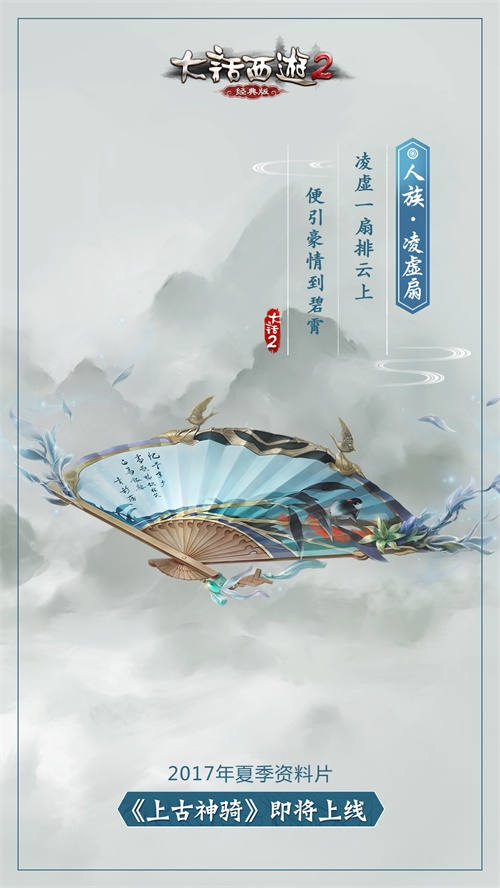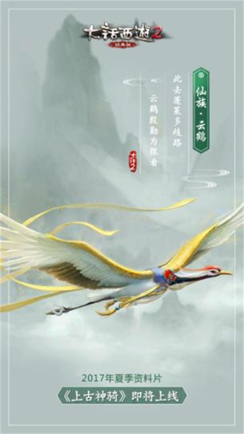 江湖风起神骑出世,踪影初现谁可驭之!《大话西游2经典版》2017夏季资料片《上古神骑》即将上线,神秘的第七坐骑现身江湖,扶摇直上翱翔九天,战力升级三界同行!在诸位玩家的热情参与下,悬念站中四族的第七坐骑陆续露出庐山真面目,仙族第七坐骑——云鹤与人族第七坐骑——凌虚扇现已登场亮相,快来一睹为快! 云鹤乘风起 仙族第七坐骑登场 此去蓬莱多歧路,云鹤殷勤为探看! 《大话西游2经典版》2017夏季资料片《上古神骑》推出仙族第七坐骑——云鹤,与普通的白鹤不同,其洁白的羽毛泛着一层金光,绰绰神姿,婷婷仙骨,头顶处一缕火羽,清霜素羽洁无瑕。云鹤出入云雾间,展翼齐霞,真可谓绝代风华,得此坐骑者,必定如虎添翼,更能精进,驰骋三界江湖! 云上凌虚扇 人族第七坐骑登场 凌虚一扇排云上,便引豪情到碧霄! 《大话西游2经典版》2017夏季资料片《上古神骑》推出人族第七坐骑——凌虚扇,其乃是一对折扇,阴阳之分,男女各执一扇,凌空驾之,直入九重天! 白云洒金天心动,扇随君子携风流。此扇只应天上有,人间难得几回见。有此助力,江湖行走更添几分胜算,三界不安,天下异动,且与凌虚扇为伴,锄强扶弱,仗剑伏魔! 《大话西游2经典版》,国风经典,亿万口碑扛鼎之作!2017夏季资料片《上古神骑》即将上线,第七坐骑现身江湖,五级帮派情义来袭! 《大话西游2免费版》,网易“大话2”品牌360°延展——绿色免费,轻松赚钱,经典再临!全民PK季火热激战中,全PK玩法积分制,全民福利零门槛! |