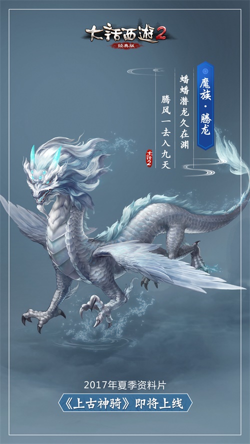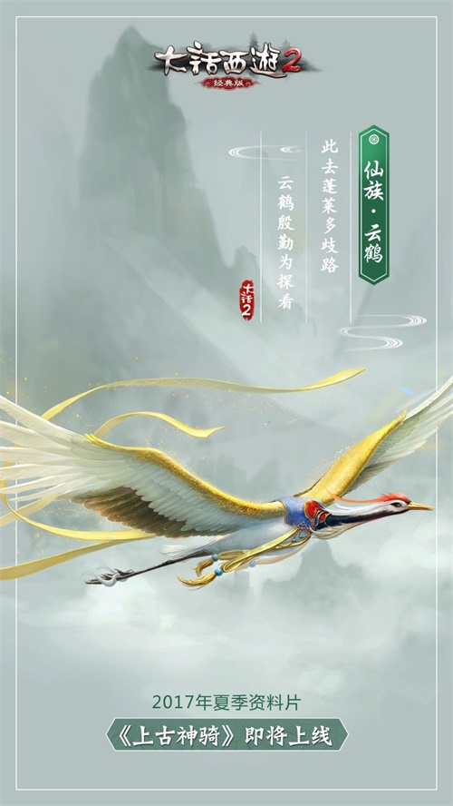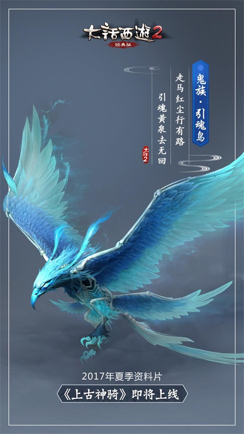 江湖风起神骑出世,踪影初现谁可驭之!《大话西游2经典版》2017夏季资料片《上古神骑》即将上线,神秘的第七坐骑现身江湖,扶摇直上翱翔九天,战力升级三界同行!在诸位玩家的热情参与下,魔族第七坐骑——腾龙、鬼族第七坐骑——引魂鸟、仙族第七坐骑——云鹤、人族第七坐骑——凌虚扇均已露出庐山真面目,快来一睹为快! 展翼上九天 魔族第七坐骑登场 蟠蟠潜龙久在渊 腾风一去入九天! 大话2经典版2017夏季资料片《上古神骑》推出魔族第七坐骑——腾龙,其身上流淌着源于神龙与凤凰的血脉,拥有一双梦幻般的白色翅膀,升则飞腾于宇宙之间,隐则潜伏于波涛之内。 龙展双翼,腾飞直上,势如闪电,人眼无法捕捉其身影,遍体灰鳞在阳光的照射下熠熠生辉,双眼星光闪烁,轩昂自若。得此神骑相助,从此仗剑江湖,来去如风! 上穷碧落下黄泉 鬼族第七坐骑登场 走马红尘行有路,引魂黄泉去无回! 大话2经典版2017夏季资料片《上古神骑》推出鬼族第七坐骑——引魂鸟,其外形神似飞鹰,颇有几分泠然之气,又带着一丝凛然正气,仿佛能洞穿世间一切罪恶,惩奸除恶,伸张正义! 引魂鸟可上九天入黄泉,断却红尘之乱,其羽翼受幽冥之火淬炼而成,双眼更是闪耀着幽蓝色的冥火,有摄人心魂之能,实乃超然脱俗之姿,得此良骑,夫复何求? 云鹤乘风起 仙族第七坐骑登场 此去蓬莱多歧路,云鹤殷勤为探看! 大话2经典版2017夏季资料片《上古神骑》推出仙族第七坐骑——云鹤,与普通的白鹤不同,其洁白的羽毛泛着一层金光,绰绰神姿,婷婷仙骨,头顶处一缕火羽,清霜素羽洁无瑕。 云鹤出入云雾间,展翼齐霞,真可谓绝代风华,得此坐骑者,必定如虎添翼,更能精进,驰骋三界江湖! 云上凌虚扇 人族第七坐骑登场 凌虚一扇排云上,便引豪情到碧霄! 大话2经典版2017夏季资料片《上古神骑》推出人族第七坐骑——凌虚扇,其乃是一对折扇,阴阳之分,男女各执一扇,凌空驾之,直入九重天! 白云洒金天心动,扇随君子携风流。此扇只应天上有,人间难得几回见。有此助力,江湖行走更添几分胜算,三界不安,天下异动,且与凌虚扇为伴,锄强扶弱,仗剑伏魔! |