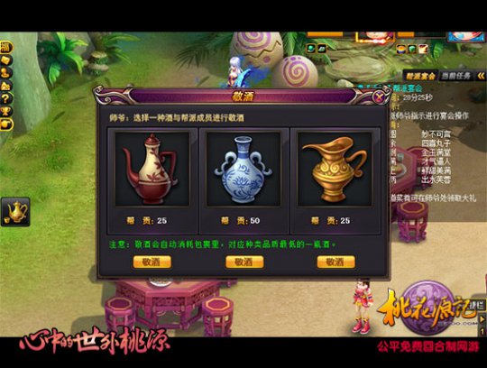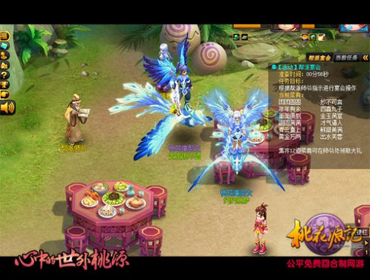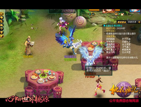 《桃花源记》有多种多样的社交玩法,帮派就属于其中之一,帮派的魅力在于它凝聚式的系统,团结式玩法。帮战、建设、宴会等会都让玩家们感受到了团结时的热血,家庭般的温馨。其中宴会算是比较受广大玩家喜爱的一种玩法。每周末大家能聚在一起聊聊天,互动一下,享受一下快乐的时光,岂不美哉! 智慧抢答 谁是最强大脑 帮派师爷会时不时的问大家一些有趣的小问题,牵扯到各种各样的知识,知道的赶紧抢答,师爷会给你发奖励的!考验你学富五车的时候到了。 齐点烟花 大家嗨起来 宴会过程中大家可以轮流点燃烟火,一边吃喝一边观看烟花,那真是一种享受啊! 投骰子 给我来三个六 喝酒当然离不开互动,大家一起划拳摇骰子,比比谁的点大,输的人自罚一杯! 一起动起来 休闲动作一箩筐 闲暇之余,大家可以一起来做做运动,跟着领舞师一起舞动起来! 相互敬酒 举杯同邀有缘人 有缘千里来相会,举杯同邀有缘人!能在一起就是缘分,干杯! 既然来参加宴会了,怎么能不吃饱呢,各式各样的菜肴大家一定要品尝一下,据说把每道菜都尝一遍的话还能获得师爷为你准备的神秘大礼呢!更多有趣玩法尽在《桃花源记》,期待你的加入噢! 【关于桃花源记】 《桃花源记》是由深圳淘乐网络研发运营的公平免费回合制网游。千古名篇唤醒每位玩家“心中的世外桃源”! 极致细腻画面,还原桃源仙境;无商城公平交易系统,实现人人平等;多重声望与货币寄售系统,真正天道酬勤!更有百科全书式全系统玩法与丰富的个性休闲设置!立足公平游戏世界,打造玩家心中的世外桃源! |