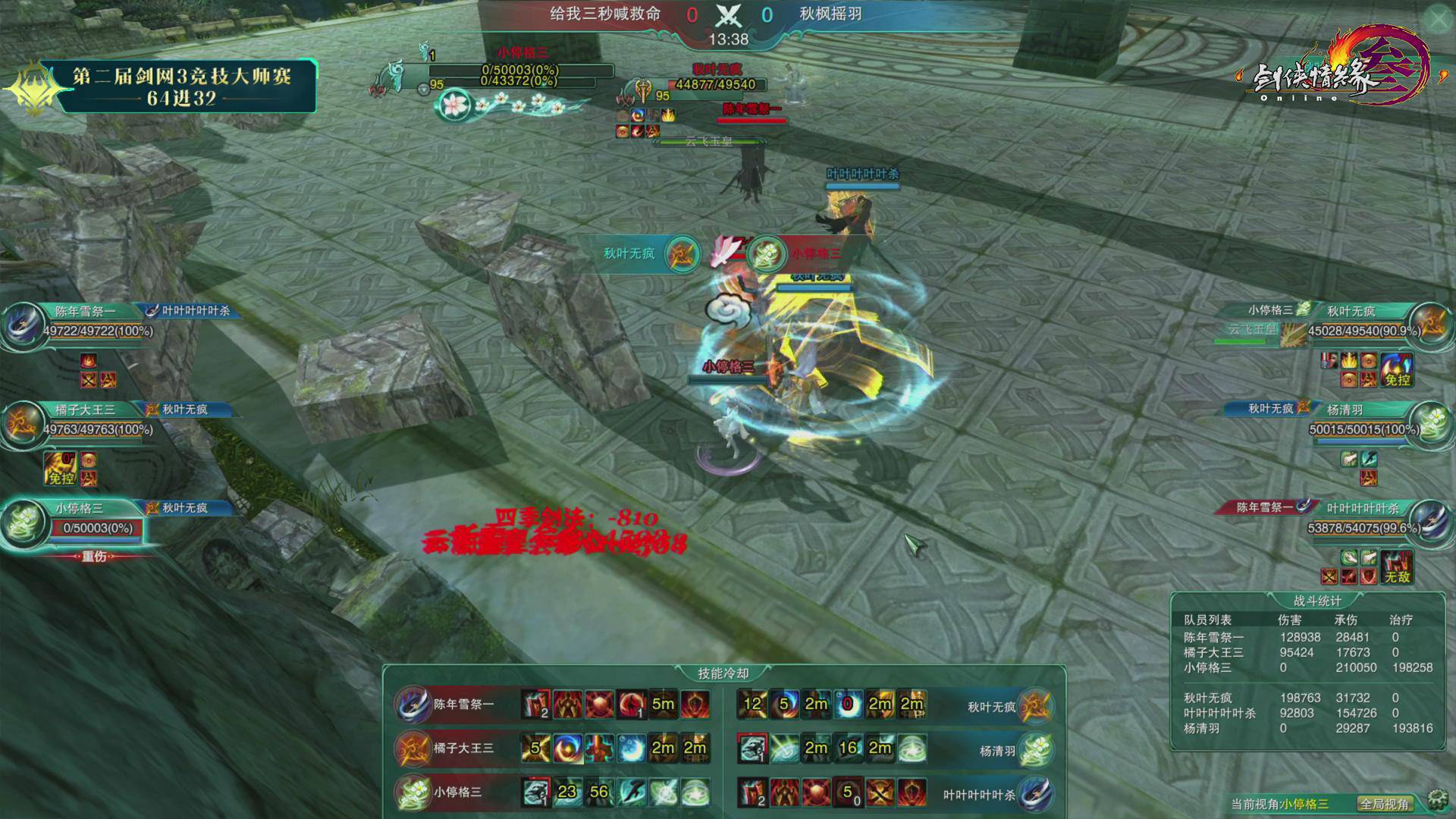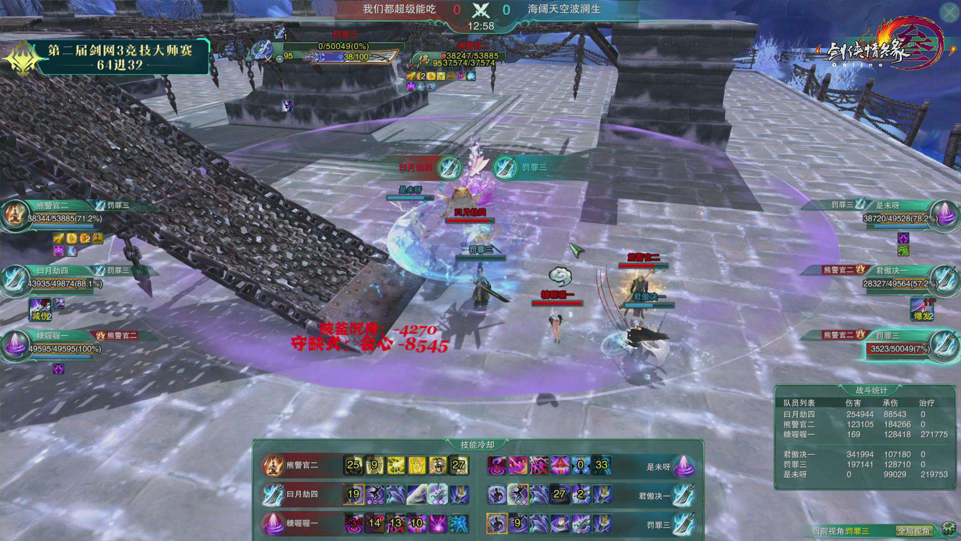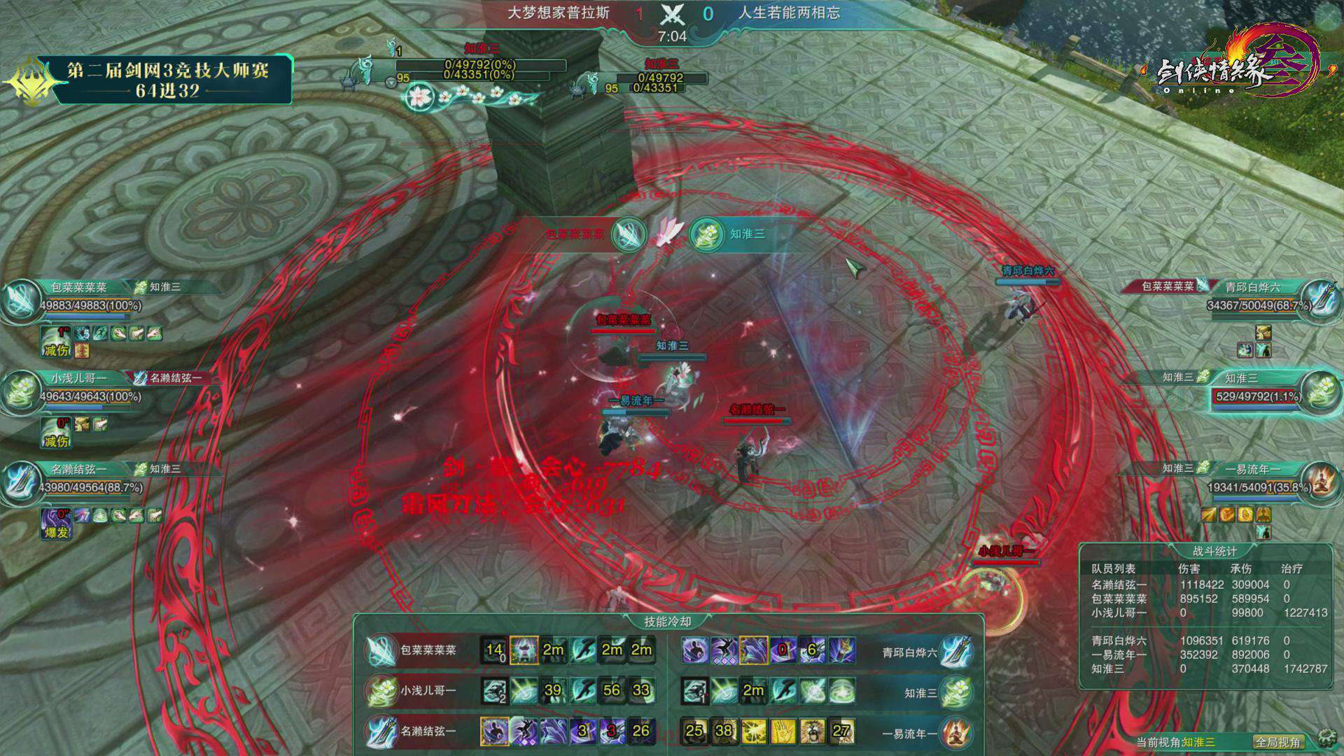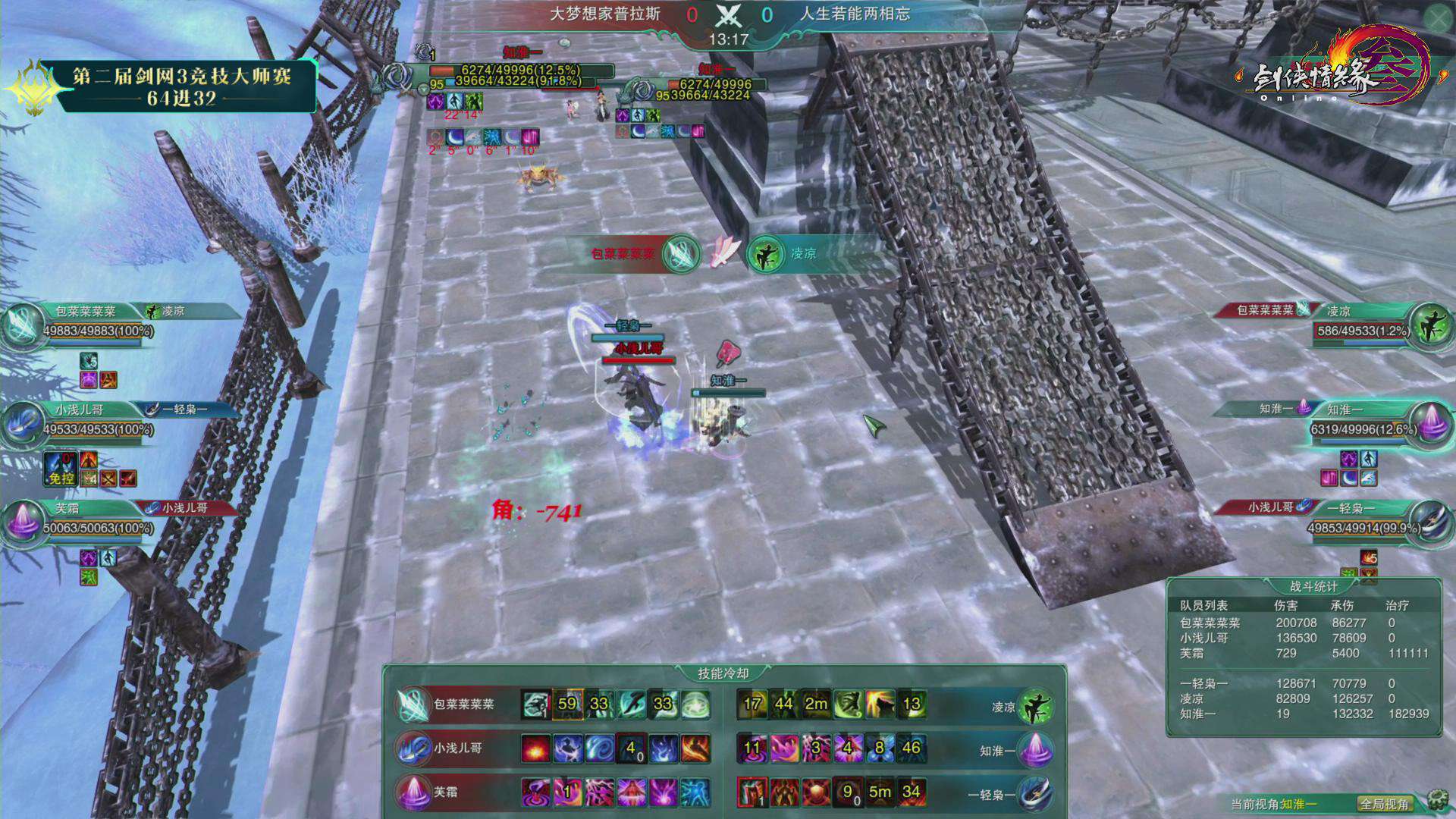 第二届《剑网3》竞技大师赛正赛5月25日迎来第四比赛日C1组下与C2组的争夺,水月无妄思、我们都超级能吃、秋枫摇羽、大梦想家普拉斯、九歌云、一世长安一六支战队成功晋级三十二强。下面一起来回顾第三比赛日的赛况吧! 5月25日战果: 第四比赛日依旧精彩纷呈,在各组对决中,面对双方压制混战的复杂局面,几次出其不意的突然转火爆发都成了垫定比赛基调的赛点。而在这些突如其来的复杂变化面前,几位治疗门派的表现也都成了左右比赛胜负的关键。 C1组 一个四象一只鸡我都懒得拍两仪(红)0:2 水月无妄思(蓝) 第一局 Banpick:相知/云裳心经 出战队员: 红方:墨和尚(易筋经)/弦亦(北傲诀)/萧羽(补天诀) 蓝方:叶弈墨(易筋经)/镇魂歌(北傲诀)/赵若曦(补天诀) 开场后蓝方强攻红方奶毒,抢珠地毯一波伤害将其打至残血。红队奶毒选择无惑奇穴,在全队血线崩塌的时候冷静蛊惑给自己,瞬发给队友,在近乎技能真空的时候依靠队友配合和冷静的抬血将血线维持了起来。不过虽然看起来险境求生,但是由于红方全程处于被动保奶之中被蓝方死死压住,且多次吃到群体伤害。最终红方霸刀处于长刀体态下由于没有解控被抓,被对方霸刀地毯加刀墙隔绝治疗后击杀。 第二局 Banpick:紫霞功/太虚剑意 出战队员: 红方:墨和尚(易筋经)/弦亦(北傲诀)/萧羽(相知) 蓝方:叶弈墨(易筋经)/镇魂歌(北傲诀)/赵若曦(相知) 开场后双方选择换奶策略,蓝方继续展现了强大的压制力始终将红方血线压制,最终成功击杀对方奶歌晋级。 我们都超级能吃(红)2:0 海阔天空波澜生(蓝) 第一局 Banpick:惊羽诀/莫问 出战队员: 红方:熊警官(易筋经)/日月劫(北傲诀)/糖喔喔(补天诀) 蓝方:罚罪(北傲诀)/君傲决(北傲诀)/是未呀(补天诀) 开场后蓝方双霸刀选择红方少林作为攻击重点,红队少林则对蓝方奶毒发起进攻,在迫使其走位后选择对方霸刀作为突破口,利用打断蓝方奶毒冰蚕3秒的沉默真空期成功压死蓝方霸刀。 第二局 Banpick:笑尘诀/焚影圣诀 出战队员: 红方:熊警官(易筋经)/日月劫(北傲诀)/糖喔喔(补天诀) 蓝方:假元宝(藏剑)/君傲决(北傲诀)/是未呀(补天诀) 开场后蓝方选择红方治疗作为进攻点,不过红方奶毒在面对对方集火时十分冷静,合理利用迷心循环缓解全队压力。随着时间进行,蓝方全队的治疗压力逐渐加大,最终由于奶毒没有选择女娲救急导致被击杀。 C2组 给我三秒喊救命(红)0:2 秋枫摇羽(蓝) 第一局 Banpick:北傲诀/云裳心经 出战队员: 红方:橘子大王(藏剑)/陈年雪祭(分山劲)/小停格(相知) 蓝方:秋叶无疯(藏剑)/叶叶叶叶叶杀(分山劲)/杨清羽(相知) 蓝方开场后选择一直强压红方相知,红方则希望通过攻击蓝方苍云缓解自身治疗压力。不过面对强压,红方相知始终无法摆脱纠缠断掉3层减疗,最终死在蓝方的大风车中。 第二局 Banpick:相知/分山劲 出战队员: 红方:橘子大王(北傲诀)/陈年雪祭(北傲诀)/小停格(云裳心经) 蓝方:阿枫枫枫(太虚剑意)/秋叶无疯(北傲诀)/杨清羽(补天诀) 开场后红方双方霸刀选择在对方剑纯、霸刀和治疗身上轮流转火,虽然制造过几次威胁但始终没有造成击杀点。而蓝方剑纯在成功摆脱掉对方压制后选择粘住红方奶秀,并在挂上五层叠刃后配合己方霸刀将其带走。 大梦想家普拉斯(红)2:0 人生若能两相忘(蓝) 第一局 Banpick:易筋经/北傲诀 出战队员: 红方:包菜菜菜菜(莫问)/小浅儿哥(焚影圣诀)/芙霜(补天诀) 蓝方:轻枭(分山劲)/凌凉(笑尘诀)/知淮(补天诀) 开场后红方莫问明教压制蓝方奶毒成功逼迫其交出千蝶,随后利用平沙及圈将红方队伍分割,明教继续黏住奶毒使其无暇治疗,而莫问则对已经半血的丐帮读徵成功击杀。 第二局 Banpick:补天诀/焚影圣诀 出战队员: 红方:包菜菜菜菜(莫问)/名濑结弦(北傲诀)/小浅儿哥(相知) 蓝方:青邱白烨(北傲诀)/易流年(易筋经)/知淮(相知) 蓝方开场后选择利用少林捉影抓人针对红方莫问和奶歌采用拉+墙的配合试图造成击杀点。红方则选择针对对方少林进行拉人双圈操作。多次交火后蓝方开始选择双双转火红方莫问,而红方莫问则利用良好的影子摆放位置,几次用平沙和影子来规避伤害险中求生,最终成功破坏对方节奏。随后莫问抓住对方奶歌追逐少林治疗的一次错位及时切剑转火奶歌造成击杀。 一曲大漠孤烟(红)0:2 九歌云(蓝) 第一局 Banpick:易筋经/北傲诀 出战队员: 红方:一醉浮笙(笑尘诀)/心无旁骛(分山劲)/画画画画殁(相知) 蓝方:温夜琅(分山劲)/满血你跑毛(北傲诀)/小小小浅(相知) 开局后红方选择丐帮8层拖住蓝方奶歌,苍云在奶妈支持下压制蓝方霸刀保护己方治疗。蓝方奶歌抗住丐帮纠缠并成功溜掉一次8层后,利用影子传送稳住己方霸刀血线。久攻不下之后,蓝方渐渐取得优势,苍云始终维持住红方奶歌的3层减疗并多次打断红方孤影后的放圈,最终成功带走红方奶歌。 第二局 Banpick:北傲诀/笑尘诀 出战队员: 红方:一醉浮笙(分山劲)/心无旁骛(惊羽诀)/画画画画殁(相知) 蓝方:温夜琅(分山劲)/风清歌(太虚剑意)/小小小浅(离经易道) 红方开场后选择鲸鱼风筝+压制剑纯,苍云则在剑纯和奶花之间转火的策略。但是由于苍云对奶花的骚扰并不持续,导致蓝方奶花的技能控制的非常好,始终没有太大压力。随后红方突然开始集火追杀奶花,多次将其陷于险地迫使蓝方交出技能保护。而蓝方在回援奶花后,也选择压制一波红方惊羽并突然对奶歌进