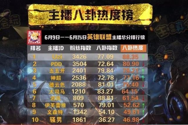 游戏主播热度榜:Uzi位居榜首 小智Miss落选