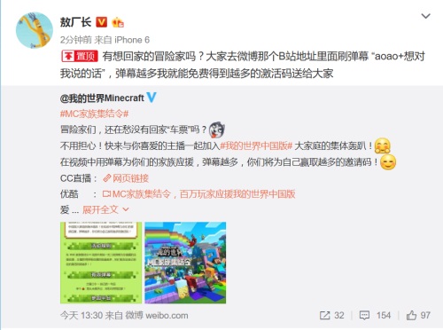 看主播花式玩《我的世界》、浏览资深玩家的科普介绍和游戏攻略,是很多中国玩家了解并且爱上《我的世界》的方式。日前,《我的世界》中国版已于7月14日开启PC Java版限号不删档测试,这些备受玩家喜爱的主播也集体发出“MC家族集结令”,邀百万玩家一起应援回家。玩家们在视频中为自己喜欢的主播家族发弹幕应援,就有机会获取测试激活码,欢乐集结回归《我的世界》中国版。 “MC家族集结令”视频: 家族集结大轰趴 与最爱的主播一起回家 《我的世界》因自由探索、无限创造的魅力吸引了无数玩家,他们在这个世界里找到了小伙伴,拥有了并肩作战的家族,有的人成为了视频主、有的人成为了建筑、红石等领域的大神,他们也带领着越来越多的冒险家加入进来,一起创造更好的世界。 7月14日,玩家们期盼已久的《我的世界》中国版PC Java版限号不删档测试正式启动。为了让更多冒险家找到回家的路,那些玩家们最喜爱的主播一起发出了“MC家族集结令”。“MC家族集结令”视频里,集结了众多《我的世界》知名主播,包括敖厂长、小本解说、大橙子、明月庄主、炎黄、籽岷等。视频将在网易CC、优酷、爱奇艺和B站同步上线。 《我的世界》中国版家族集结大轰趴已经开场,玩家可以用独一无二的弹幕在“MC家族集结令”视频中为自己喜爱的主播应援,发送“主播口令+自己的一句话”即为有效弹幕。主播获得弹幕应援的数量越多,他们能发给自己粉丝的激活码也就越多。 动动手指,既能和喜爱的主播合影,还能有更多机会获得测试激活码。冒险家们快行动起来,为最爱的主播应援,和他一起加入《我的世界》中国版大家庭的集体轰趴,回归充满无限乐趣与欢乐回忆的《我的世界》。 百万玩家集结应援 欢迎来到《我的世界》中国版 响应“MC家族集结令”之外,冒险家们还有什么途径获得回家的车票,抢先体验《我的世界》中国版?据悉,《我的世界》官方网站(http://mc.163.com/)上的测试预约活动仍在继续。无论是国际正版玩家、参与过一测的玩家、参与过往预约的玩家,亦或是新玩家,都可以根据个人需要,在官网的发码活动中选择适合自己的拿码方式。 为了让玩家感受家一般的熟悉和便捷,《我的世界》中国版与国际版内容保持一致,最大程度地保证游戏内容的原汁原味,并开放了官方正版的免费下载,让更多的国内玩家地感受创造的快乐。同时,《我的世界》中国版将进一步优化游戏环境和体验,为玩家提供更好的平台和服务。 如今,那些你最喜爱的主播们邀玩家一起回归《我的世界》,“MC家族集结令”一经发出就获得了众多冒险家的响应,满屏弹幕里浓缩了那些《我的世界》里最棒的故事与回忆。同样是冒险家的你,也来赴一场“MC家族”之约,为主播应援助力,和家族小伙伴们一起到《我的世界》中国版开启全新的冒险旅程吧。 关于《我的世界》: 网易游戏代理的《我的世界》(Minecraft)是一个关于方块与冒险的游戏,玩家可以独自一人或与朋友们一起自由冒险,探索随机生成的世界,创造令人惊叹的奇迹。无论是建造简单质朴的小屋,还是拔天倚地的城堡,尽可自由发挥想象力。 了解更多相关信息,请前往http://pc.yzz.cn/ku/minecraft |