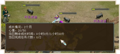 《大话西游2》开猪场啦,“大表哥”丁磊邀你合伙养猪,品尝网易味央猪肉!8月13日17点至 9月13日0点期间,诸位玩家可登陆游戏领取黑猪,将其驯养至满足一定要求之后,即可领取海量经验以及丰厚物品奖励,更有机会获得实物奖励网易味央猪肉! 经典版猪场开启 大表哥喊你养猪啦 黑猪的成长分为分为已成长月数与当月进度(0-5月为1-80,6-9月为1-100),玩家在线则成长自动增长,每天增长时间上限为1.5-2小时,增长速度与心情有关。每天系统将刷出两次简单的随机任务,完成任务即可保持黑猪心情良好。黑猪心情上限与猪舍等级相关,未达到当前上限时,可以通过“给玩具”玩法提高黑猪心情(每天最多一次)。 黑猪猪舍分为4个等级,等级越高,黑猪心情上限越高,黑猪成长越快。猪舍升级需要收集4种不同的猪舍建材,收集途径包括:完成每日随机任务、黑猪成长满月、带黑猪出去逛逛等,其中,带黑猪出去逛逛时,可能触发各种随机事件。 黑猪每满1个月可获得经验奖励,满6个月可获得一次物品奖励,养成10个月后可将它交还给太白金星,能够获得丰厚物品奖励,包括网易味央猪肉、龙之骨、新宝石、终极修炼丹、千年魂石、一阶仙器、筋骨提气丸等。 免费版猪场开启 大表哥喊你养猪啦 活动期间,诸位免费版玩家可以到自己的庭院找到NPC“监牧长”,花费1万银两购买黑猪仔进行驯养,每人每次最多驯养1批黑猪(3只)。黑猪初始成长度为0,黑猪每天最多成长60成长度(每在线2分钟,成长+1成长度,每天上限120分钟)。 黑猪每天会有饿了、有跳蚤、想出去逛逛等负面状态,需要玩家帮忙清除。黑猪初始品质为60,最低为0,最高为100。每天需驯养黑猪2次(视情况喂养、驱赶跳蚤、带出去逛),若没按时驯养,会降低品质。每天领取天道酬勤60分奖励时,可额外获得“优质猪粮”,对黑猪使用优质猪粮,可提升黑猪10品质。 黑猪成长至300成长度时,不会再产生负面状态,也不会扣品质,此时可进行收货,根据猪品质获得经验、网易黑猪肉(实物奖励)、黄宝石、八荒遗风、蕴灵珠等奖励。 |