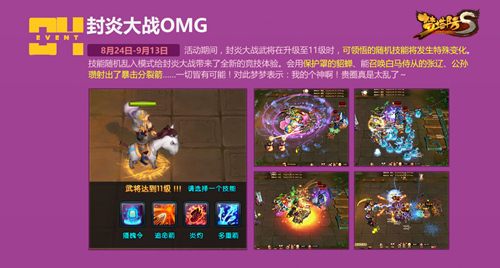 “缘来就是你”,这个七夕有福利啦!由电魂网络自主研发的《梦塔防S》将于明日上线全新版本,届时将会有结婚系统、封炎大战新武将火神陆逊以及主将系统与玩家们见面,在更新的同时将会上线很多福利哟,今日带你一览《梦塔防S》新版本的活动,简直不要太给力,活动将于明日上线! 活动一:开心转转乐火神陆逊等你激活 《梦塔防S》开心转转乐再次来袭,每天在游戏中完成指定任务后,即可在转盘界面中获得相应的转盘机会。有机会获得底座、紫色技能、陆逊炎魄等极品道具,少侠们加油哟! 活动二:七夕佳节不单身寻小仙子送大礼 七夕佳节临近,小仙子乱入《梦塔防S》世界,部分关卡地图中有几率出现小仙子,少侠们将其击杀可获得七夕节日大礼,技能、将灵、绑元、高阶无极卷轴任你选。 活动三:挑战封炎大战新武将火神陆逊获大礼 《梦塔防S》将在周年庆版本更新后推出封炎新武将陆逊,少侠们每天参与封炎大战并且使用陆逊获得比赛胜利,可获得陆逊胜利礼包一个,可开出大量封炎币,更有机会得到陆逊炎魄! 活动四:封炎大战新模式OMG玩就送不停 《梦塔防S》封炎大战OMG模式开启,武将在升级至11级时,可领悟的11级技能从2种增加至4种,除该武将的2种专属技能外,玩家还有机会学籍随机出现的2种其他武将的技能。技能随机乱入给封炎大战带来了全新的竞技体验。会用保护罩的貂蝉,能召回白马侍从的孙尚香,天神下凡的姜维·——一切皆有可能! 《梦塔防S》全新资料片“缘来就是你”明日上线,活动四重唱也将明日更新哟,届时大家踊跃参加活动,获得奖励多多,最后祝大家都能在《梦塔防S》中找到对象哟! 明日《梦塔防S》全新资料片还有很多内容,请关注以下渠道获取更多消息: 了解更多相关信息,请前往http://mtf.yzz.cn/ |