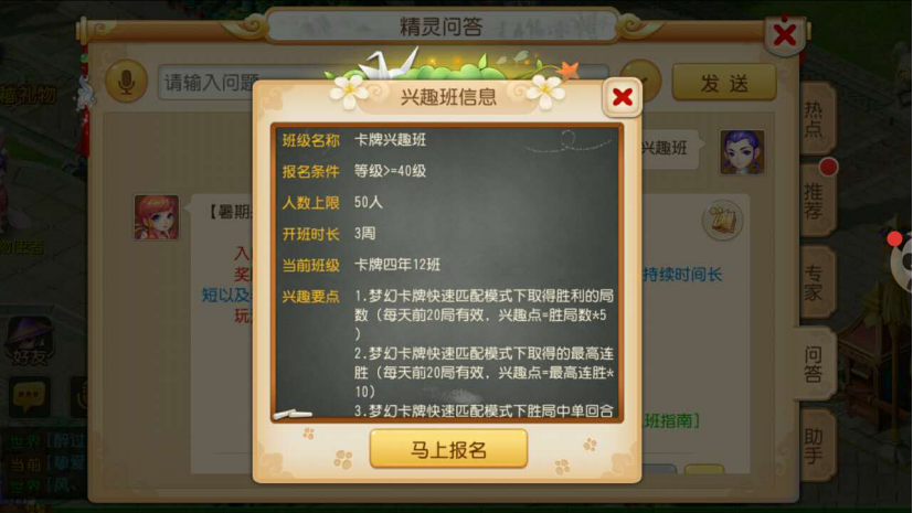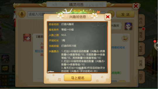 寓教于乐,其乐无穷!8月23日-27日,《梦幻西游》手游暑期兴趣班第四期开始接受报名啦!继钓鱼、捉鬼、植树、炼妖、萌宠等兴趣班之后,卡牌和打造两大兴趣班也正式全服上线。无论你是休闲卡牌爱好者,还是装备打造小能手,都能够报名参与其中,在充实的学习生活之余,赢取丰厚的游戏奖励! 学无止境,培养兴趣涨姿势 《梦幻西游》手游暑期兴趣班活动自开班以来,就备受玩家追捧!在此前已经结束的三期兴趣班中,不少玩家通过完成一系列兴趣班任务,逐步提升自身在抓鬼、植树、钓鱼、炼妖等方面的技巧和能力,在这个过程中,许多玩家还相互交流心得,彼此间建立起深厚的情谊。而兴趣班另外一个令玩家感兴趣的地方,还在于其会通过比较同一兴趣班内玩家的兴趣点收获,评选出班长、副班长、学习委员、文艺委员、体育委员等班干。相信对于每一位玩家来说,担任班干不仅象征着荣誉,同时也意味着是一种榜样,勉励自己要更好地以身作则,与其他玩伴一起好好学习,共同进步。 休闲卡牌,斗智斗勇趣味浓 兴趣班第四期中,休闲卡牌兴趣班正式开课!玩家若在开课期间满足相应要求,将会获得大量兴趣点。每天前20局,在卡牌快速匹配模式中赢得胜利,玩家将能够获得胜局数*5的兴趣点;而如果在对战过程中获得连胜,收获的兴趣点将达到最高连胜局数*10的数量;此外,每天前20局,玩家在获胜的局数中,将会赢取单回合造成最高伤害*8、触发物理暴击次数*3、成功使用奔雷咒造成伤害次数*2的兴趣点。梦幻休闲卡牌对战是斗智斗勇的过程,玩家在这个过程中要心思缜密,考虑好卡牌组合,才能为自己赢得更多的兴趣点。 装备打造,勤学苦练收获多 本期兴趣班还特设打造兴趣班,相信喜爱打造装备的玩家都不会错过这次机会。开班期间,玩家将根据自身打造出的≥60级的珍品装备数量,按照武器、衣服和其它分类,获得相应的兴趣点;若打造出特效装备、特技装备,则都能够获得数量*5*装备等级/10的兴趣点;此外,玩家还将获得每天打造的3件最高珍品初始评分总和*0.05的兴趣点;当然,如若在分解≥60级装备过程中获得制造书、元身,玩家也会根据次数获得对应的兴趣点哦。 现在,《梦幻西游》手游第四期暑期卡牌和打造兴趣班正在火热招生,而第五期秘境降妖兴趣班目前也在部分服务器测试,报名时间为8月23日-27日。如果你对卡牌和打造兴趣班备感兴趣的话,那么即刻就赶紧登陆游戏,进行报名,与其他玩家一起,在一场学习之旅中,体验梦幻般的游戏乐趣吧! 了解更多相关信息,请前往http://my.yzz.cn/ |