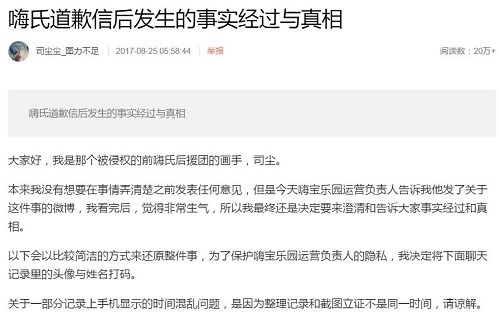 嗨氏画手事件女孩现身:未退学但侵权依然存在