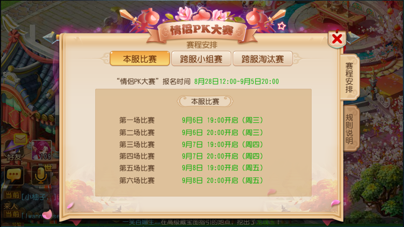8月28日,恰逢七夕佳节,《梦幻西游》手游也为玩家送上浪漫PVP赛事——情侣PK大赛!从8月28日~9月5日,每一对异性玩家都能够前往报名参赛,在赢取丰厚奖励的同时,培养彼此的默契,让亿万玩家共同见证自己的爱情! 比翼双飞,情侣PK大赛要你来战 七夕佳节到来,想来点不一样的玩法么?现在,《梦幻西游》手游情侣PK大赛正式开启报名阶段!从8月28日~9月5日,玩家只要所在服务器等级和自身等级均达到60级,就可以两人组队,前往情侣PK使者处报名参与本服比赛。届时,系统会根据参赛团队成员的最高等级,将参赛战队分配到不同组别中,与其他等级相当的玩家进行对战。活动将以本服比赛+跨服比赛的方式,决出最有默契和实力的情侣! 作为《梦幻西游》手游唯一的双人PVP比赛,相信这一活动一定能够吸引无数有情人,前来参战! 全新体验,选择你的最佳搭档 和上一届情侣PK大赛有所不同,本届情侣PK大赛采用了全新的对战模式: 在每局对战之前,系统将随机选择25名伙伴组成本局游戏的伙伴库。首先对战双方轮流选择总共4个伙伴,被选中的伙伴不能参与到本次对战之中。而在接下来,对战双方还将从剩下的伙伴中轮流各自选择总共5个不同伙伴。在选择完毕之后,双方将从自己的5个伙伴中,选择3个伙伴上场。也就是说,为了取得战斗的胜利,玩家不仅需要提升自己的实力,还要准确判断对方在场上可能使用的伙伴,并为自己搭配出最强的伙伴组合。 专属爱礼,浪漫结晶等爱降临 为了感谢爱侣们对于本次活动的支持与厚爱,《梦幻西游》手游也为爱侣准备了专属 。在本服比赛期间,只要爱侣参赛,即可每天获得一朵蓝色妖姬。而若是在6场小组赛中赢得3胜,更能获得情侣PK专属队标——浪漫结晶。获得本服比赛前8强的战队,还能获得玫瑰花束、花开并蒂、挚爱玫瑰、高级兽诀、高级内丹等丰厚奖励以及专属称谓情侣PK心心相印。 而在跨服比赛阶段,每一场比赛打完,玩家都能获得一朵玫瑰花奖励,跻身32强的情侣,还将根据自己的名次,获得比翼双飞、千叶莲露、高级兽诀、专属情侣PK称谓等奖励。 如此丰厚的奖励,怎能不让人一见倾心呢? 与其默默观望与守候,不如前来参与《梦幻西游》手游情侣PK大赛,在战斗之中,表白自己的真心!在这个属于浪漫的季节里,谁能和自己的爱侣一路同行走到最后?答案很快就将揭晓! 了解更多相关信息,请前往http://my.yzz.cn/ |