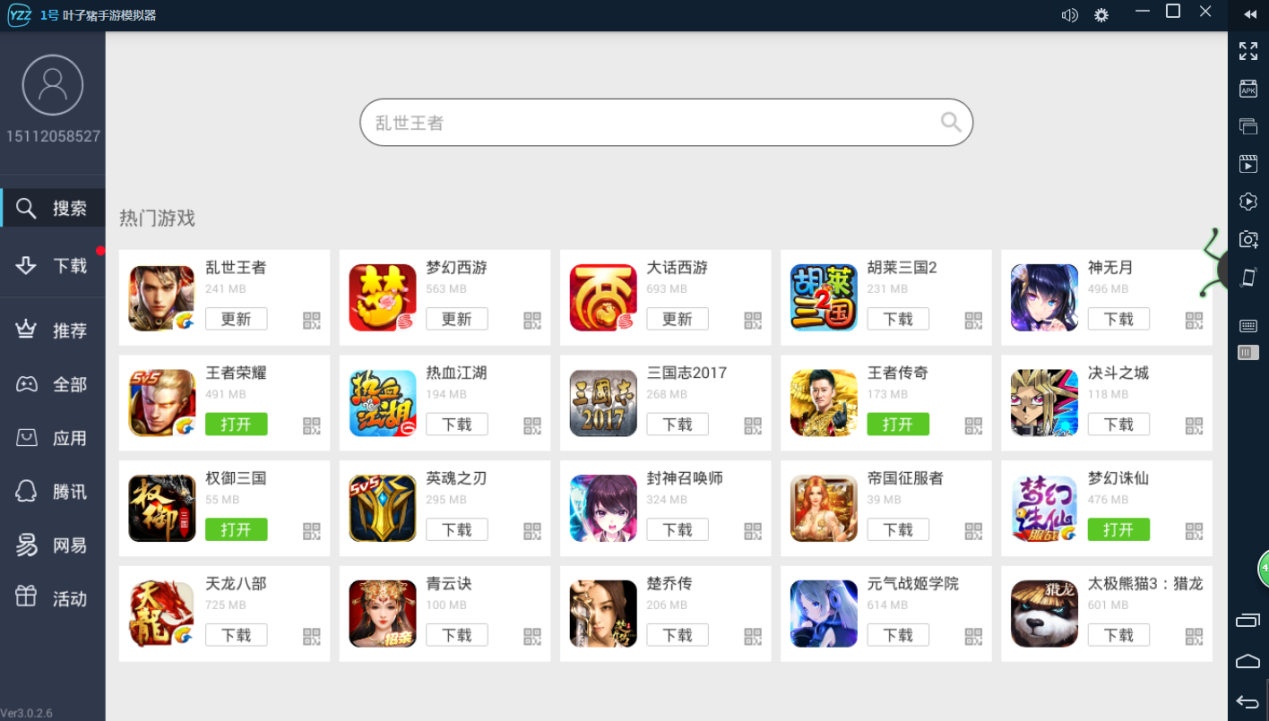 英雄为棋,天下为局!20年经典IP《三国群英传》正版授权策略手游《三国群英传-霸王之业》正式开启!游戏秉持写实风格,推出三国全系列人气武将,带给玩家极具代入感的三国诸侯纷争乱世战场。武将们将以重要参与者的身份,参政领兵,与玩家共创一方霸业,从一方诸侯逐渐成长为睥睨天下的乱世王臣!各位策略迷们,准备好开启争霸天下之路!可以用叶子猪模拟器这款软件在电脑上面玩。 下面是操作流程: 1、首先在搜索网站搜“叶子猪模拟器”,进官网下载安装最新版本。 2、在模拟器桌面直接点击游戏中心页面,输入搜索“三国群英传”。 3、游戏下载完会自动安装,在模拟器桌面点击图标启动游戏即可。 4、操作方式是鼠标点击和拖动。还等什么?开始你的王者霸业吧! 叶子猪模拟器官方交流群:272609065 叶子猪模拟器下载地址:http://downtool.yzz.cn/yzzbox/v4x/yzz_android_installer_4.0.11.exe 了解更多相关信息,请前往http://sy.yzz.cn/ku/sgqycbwzy/ |
