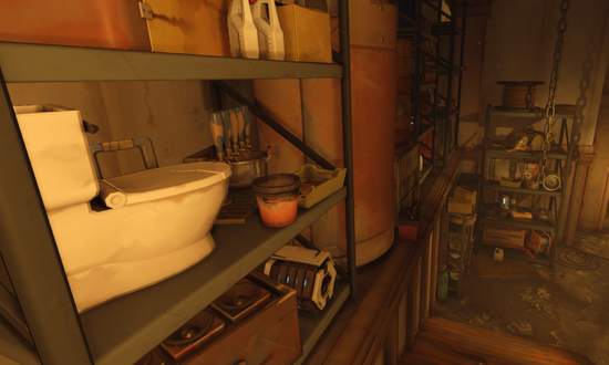 9月20号凌晨,守望先锋历史上最脏、最乱、最破、最埋汰的地图——渣客镇终于上线了。就在爱玩君睡眼惺忪的时候,突然被邮递员小哥叩开了房门,打开一看,竟然是渣客镇女王寄来的信: 收到来信的我如坐针毡,事关数百战网点的投资,实是兹事体大。于是我马上整理了相关信息向领导汇报,领导沉思片刻大手一挥:“去吧,顺便看看能不能提升一下我们爱玩网的阅读量。” 于是身披重任的我风餐露宿赶往渣客镇,开始了投资调研之旅。 抵达渣客镇,走出车门,定睛扫了一眼渣客镇的城镇规划,爱玩君特喵的就傻眼了: 这……也没在七线乡镇搞过投资项目啊,这玩意儿能赚钱吗? 于是我陷入了苦苦的沉思,久久,突然脑中灵光一现,赶紧拨电话给渣客镇女王: “喂,女王,我到了,我想问下……” “老弟你好你好。感觉我们渣客镇怎么样,能致富吗,预计多久上市啊?” “女王你好,内个……我想问下,咱们这考虑拆迁盖大楼吗?就门口那片棚户区,盖个50层的崖景房,啃腚赚钱!” “不拆。” “……” 女王说不拆,那这鸟不拉屎的地方怎么赚钱?我再次陷入苦苦的沉思,久久,突然脑中又是灵光一现,对女王说: “女王,考虑养猪吗?这么大一片场地,能养多少猪啊!放心,养猪啃腚能赚钱,我们家老板就是养猪的。” “别在我面前提猪。” “……” 我扭头看了一样满墙的“路霸通缉令”,心中无限苦楚。既然两个法子都行不通,我决定先仔细逛逛渣客镇,了解用户需求,才好对症下药嘛。 老鼠与猪禁止入内 路霸的家 在渣客镇,住在镇外的只有两种人——家里一名不文的超级穷人,以及被女王通缉狂鼠和路霸。 路霸作为渣客镇最知名的赏金杀手,与狂鼠家毗邻,住在镇外最边缘的地方。与其他人的破烂棚户屋相比,路霸的家几乎算是豪宅中的豪宅(进攻方出生点)! 带阁楼的双层大别墅,自带供暖锅炉,配备仓库和车库 不仅豪宅明亮宽敞、配备齐全,连内设装修都堪称渣客镇最奢!摩托车、冰箱、电视、厨房、发电机、手工台、独立卫浴、抓娃娃机(小优)一应俱全。 在路霸的家里,爱玩君发现了重要的八卦线索——孤路霸疑似已和狂鼠婚前同居(胖瘦党的福音)!因为我在他的家里发现了大量的双人生活用品! 吃饭,两个人吃,路霸吃大碗的,狂鼠吃小碗的;路霸坐圆凳子,狂鼠坐方椅子。 看电视,两个人看,路霸坐左边,狂鼠坐右边。 逛街,两个人去,路霸负责油门刹车,狂鼠负责哔叨叨哔。 睡觉,两个人睡,路霸在下面,狂鼠在上……? 随后精明的我在路霸的家中发现了重大商机,路霸这位澳大利亚原住民竟然是个中餐粉丝(还记得路霸的春节特写——“胡吃海塞”吗)!在路霸家中,这种广式早茶的蒸笼随处可见! 那么食量惊人的路霸到底是在哪里购得如此多的广式菜点呢?沿着这个思路,我紧忙进入渣客镇镇内的商业步行街一探究竟。 渣客镇步行街实地考察 餐饮 进入渣客镇的大门,沿主干道一直前行(推车路线),在第一个拐弯处,就可以看到一家可外带的中餐馆。 顾客可以选择在店里吃,也可以选择打包带走,从菜单上看,菜品种类也就一般丰盛吧,有车仔面、叉烧包、炸鸡肉串、烧鹅、海鲜面、广式蒸凤爪、红烧鲫鱼、干煸蚕蛹。 爱玩君心想,如果由我们投资来做,从自家食堂抽调两个师傅,再外聘几个街边大厨。半年内外卖骑手入驻,一年内扩展100家连锁,三年内纳斯达克敲钟上市,稳稳做到全澳第一,计划通! 杂货零售 敲定了入驻餐饮业的计划后,爱玩君在中餐馆对门又发现了一家名为“布鲁斯的店”的商铺。 这间商铺是一个二手零件买卖中心,也就是一个杂货五金店。店内商品毫无分类,毫无规划,捡到啥卖啥。大到电容箱、炊具、信号接收器,小到麦克风、茶壶、烛台全部丢在一堆,包括二手马桶…… 店主布鲁斯曾经是一位工程师,在那场巨大的核爆炸之后,就在渣客镇中以倒卖零件为生,而路霸则是布鲁斯的老主顾了。 官方数字漫画《废土》 作为从东方远道而来的金主爸爸,爱玩君决定拯救一下渣客镇的日杂零售业,第二大投资项目就是把国内的零售业引入渣客镇。不说开分店上市,起码提升一下渣客镇居民的消费质量还是很有必要的! 娱乐消费 沿着主道路再往前就到了渣客镇中最“奢靡”的娱乐场所——野狼伍德的酒吧。 谢天谢地,爱玩君终于看到了一家极具合作素质的店,整体装潢风格像模像样。野狼伍德酒吧分为两个区域——吧台和一间迪厅。 很多人都觉得这个吧台除了简陋点倒没什么,哼,这么想你就大错特错了! 可能大家都不知道,这座吧台后面藏了一把40米长的锯齿大砍刀。可见酒吧老板也是没少经历被打砸抢,所以才在暗处配了武器以备不时之需。这个idea非常实用,建议花村游戏厅的老板参考学习。 迪厅的配备非常朋克风。 在野狼伍德酒吧里,你几乎看不到红酒的存在,最受欢迎的酒品是啤酒和威士忌(拿小本本记下来)。酒吧装修非常别致,在某个角落里,你甚至能发现一张如此调情的双人卡座。 二手沙发+马桶的组合见过没有?用马桶水箱冰镇的威士忌尝没尝过?用氢气烛台代替传统蜡烛害不害怕?整体氛围非常适合殉情男女和离婚谈判,一言不合即可携手爆炸。 不过这间酒吧在渣客镇当地非常受欢迎,爱玩君准备投资一个生产威士忌和啤酒的酒厂和野狼伍德酒吧搞合作。为了解决酒吧作为不足的问题,嗯,再投资100个马桶吧! 商旅住宿 敲定了第三大投资,爱玩君沿着步行街