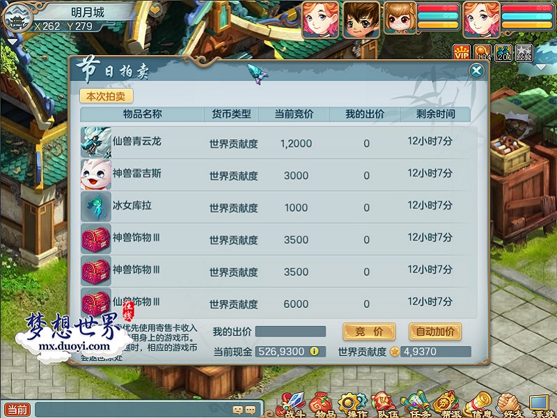 《梦想世界》全新内容“圣器降临”正式开启,130级装备荣耀降世!国庆长假怎么玩?快来《梦想世界》!加入我们带你狂欢!好礼拿不停!十一长假宅在家里也不孤单! 突破极限 挑战自己 国庆活动期间人物等级≥30级的玩家可组成五人队伍,前往明月城找到武承尉参加极限大挑战活动。挑战开始后,将进行一场连续12关的战斗,战斗难度逐关提升。通过每关挑战,都将获得一定奖励,通过全部12关挑战,将获得丰厚奖励! 月饼小当家 欢度中秋 玩家通过日常活动收集食材和配方后制作月饼。玩家通过参与日常活动获得的活跃度满足一定要求即有机会获得制作月饼的配方和原料,通过合理控制各种原料的添加数量可以做出不同种类的月饼,食用后可以获得不同类型的奖励 节日拍卖 国庆节期间更有珍稀物品拍卖会!届时可以在明月城(260,279)金总管处参加,仙兽青云龙、神兽雷吉斯、小精灵-冰女库拉、神兽仙兽饰物等你来拍! 关于《梦想世界》 《梦想世界》是多益网络推出的高端回合战斗网游,拥有富有策略的战斗系统,11个流派421种招式,相生相克变幻无穷。独创电影式副本,带你穿梭古代未来,结交关羽,飞上太空战机械之王,探索超乎想象力的奇幻世界。随心打造个性角色,华丽翅膀、拉风坐骑、多彩光环、超萌小精灵等自由搭配。实时语音畅聊,结交游戏好友,遇上唯美爱情,一起闯荡武侠江湖。 了解更多相关信息,请前往http://mx.yzz.cn/ |