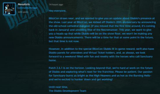 《暗黑破坏神3》不会在暴雪嘉年华上公布新消息 但未来会有的