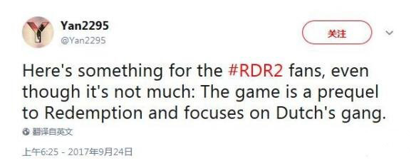 R星将在明晚11点(28号)公布《荒野大镖客2(Red Dead Redemption 2)》的新情报,不过今天就有舅舅党现身给我们透露了一些消息。 曾经曝光过《黑色洛城》重制版的前R星内部人士Yan2295,在Twitter上发表了新推文。 推文表示,那些《荒野大镖客:救赎2》的粉丝们,这里透露一小点消息:本作是《救赎》的前传,将专注于荷兰黑帮的故事(Dutch's gang)。 其实自去年游戏公布,就有过这样的传言,外媒eurogamer和polygon等都曾有过推测,表示《荒野大镖客2》的将是一部前传故事。那就意味着我们或许会体验到约翰叱咤江湖的那段故事。 约翰?玛斯顿 在一代游戏中,玩家将扮演金盆洗手的原帮派份子约翰?玛斯顿(John Marston),在历经多年与凶恶荷兰黑帮厮混的犯罪生涯后,约翰想为自己及家人寻求平静的生活而退出了帮派,度过3年平静的生活。不过来自联邦政府调查局干员的最后通牒彻底粉碎了约翰的生活,为了猎杀昔日伙伴的3 名帮派份子,调查局以约翰妻儿的人身安全逼迫他重回西部荒野,自此展开曲折晦暗的故事剧情。 |