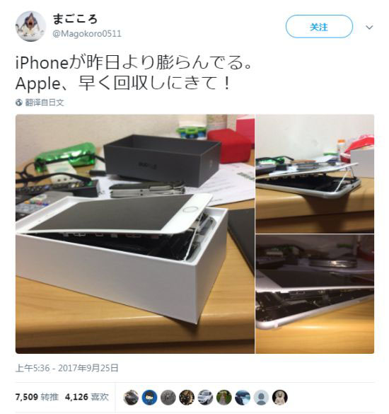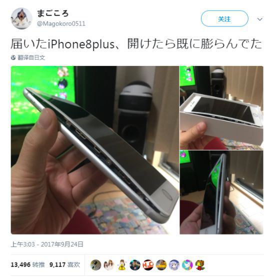 日本网友曝iPhone 8自动“开屏” 电池鼓包撑开屏幕