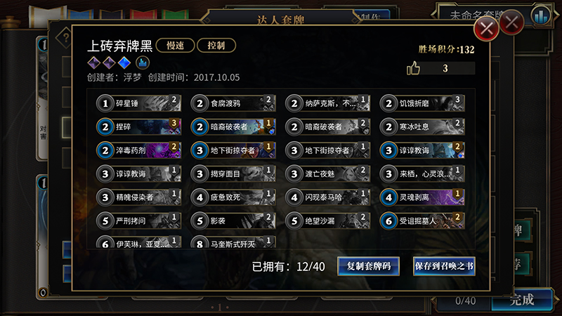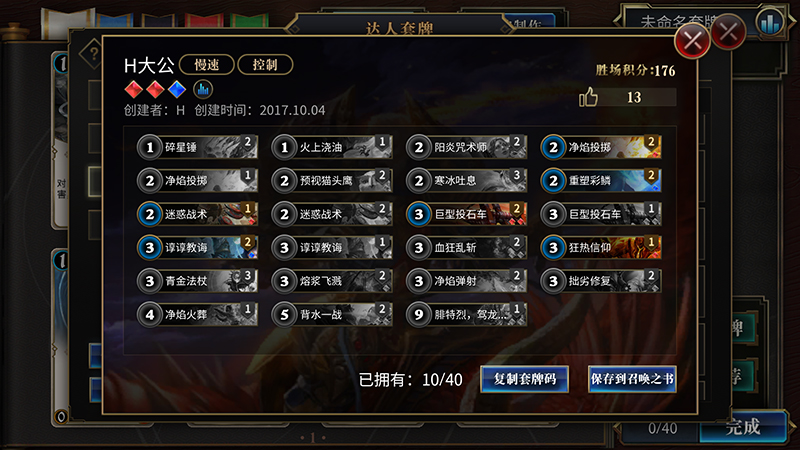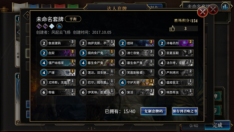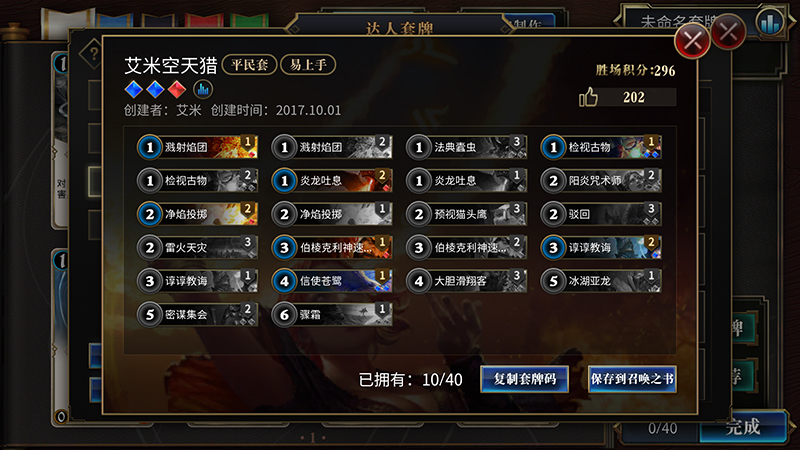 网易2017新一代竞技卡牌《秘境对决》将于10月18日全平台公测。游戏自9月29日首次不删档至今人气相当火爆,作为一款TCG界的新秀,游戏的天梯环境自然是大家关注的焦点。那么不妨一起来看看目前各分段都有哪些流行卡组吧。 快攻占领青铜白银 在现目前的环境中,在青铜白银分段,最常见的热门流派就是红蓝快攻构筑。这个体系 拥有上手难度很低、新手容易合成,前中期非常强势的优势,可以保证在低分段以较高的效 率上分。话不多说,上卡组—— 套牌码:l8x6eEsWURhnEmUUyhT7EXUUChK7GxsXHxKrFK8UsxQrFDsU 如果要使用这副套牌, 请先将套牌码复制到剪贴板,然后在“达人套牌”里点击“使用套牌码”进行粘贴。 套牌码:l8x6eEsWURhnEmkSyhT7EXUUChJlFLsbGxcfEqoUrxSzFCsUOxQ= 如果要使用这副 套牌,请先将套牌码复制到剪贴板,然后在“达人套牌”里点击“使用套牌码”进行粘贴。 艾米空天猎成大众宠儿 到了中级分段时,快攻流派的玩家数仍然不少,但艾米空天猎的构筑玩家也比比皆是了。 这套牌的优点颇多,包括构筑成本相当亲民,过牌与解场能力优秀的同时,还拥有高额的爆 发,是近期最为热门的卡组之一。 套牌码:l8x6eEsWURhnEmUUyhT7EXUUChK7GxsXHxKrFK8UsxQrFDsU 如果要使用这副套牌, 请先将套牌码复制到剪贴板,然后在“达人套牌”里点击“使用套牌码”进行粘贴。 高分段偏爱慢速构筑 《秘境对决》拥有不少本身TCG基础就非常扎实的玩家,因此天梯环境并不是唯快攻是 从,尤其是在钻石及以上的分段。这里的环境快攻要少得多,各种控场与后期构筑在这个分 段百花齐放。 套牌码: l8x6eMUXyRPdE+8T8hMVGBkYTxxdGncafxqWFtkY/xanE3cTgRORE5UbmRuiE6URvR M= 如果要使用这副套牌,请先将套牌码复制到剪贴板,然后在“达人套牌”里点击“使用 套牌码”进行粘贴。 套牌码: l8x6eOsT7xPxE/4TARQNGBUYMxQ6GEUYaRqKGo0YlhaZGLMUthS5FP4WdhOBE4oTn hM= 如果要使用这副套牌,请先将套牌码复制到剪贴板,然后在“达人套牌”里点击“使 用套牌码”进行粘贴。 套牌码:l8x6eMIYxhtKGlIWYRJnEm4acRh1En0YhxgKEjoYJxK/G7MUtxQ6FL4U 如 果要使用这副套牌,请先将套牌码复制到剪贴板,然后在“达人套牌”里点击“使用套牌码” 进行粘贴。 总的来说,《秘境对决》目前的天梯环境快攻体系居多,而且并没有要降速的趋势。但 速攻的数量曲线随着分段越高越少的信息也说明这是一个百家争鸣的版本。这样的话,天梯 环境还是相对健康的。当然,还有少数天赋异禀或者意识超乎常人的玩家构筑一些脑洞大开 的卡组,仍然能够让强度和娱乐效果兼具。但那些也并不是目前的主流了。相信凭借《秘境 对决》的玩家质量和热度,在后续周期中会陆续有更多卡组逐渐流行起来。或许,你就会是 下一套热门卡组的开发者也说不定呢? 了解更多相关信息,请前往http://news.yzz.cn/ku/mjdj/ |