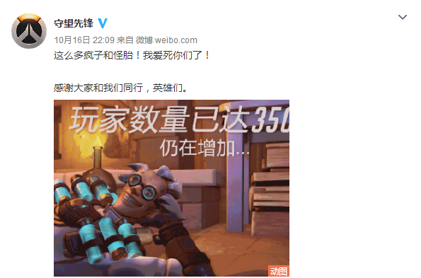 年增长超1000万?守望先锋官方称玩家数突破3500万