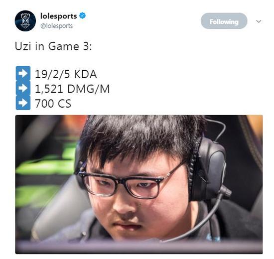 RNG和FNC的这场bo5中,第三局RNG因为自己的急躁和心态膨胀输掉了比赛,但是拳头官方在赛后给出了一个非常有意思的数据! ![]() UZI在这局拿出了大嘴这个英雄,乍一看似乎表现平平,但是这三个数据,其中有两项已经打破了世界赛记录! 一个是分均伤害1521,另外一个就是补刀数700! ![]() 目前这两个数据已经由UZI完成最高数据的记录,后续想要超越uzi那可就很难说了。另外还有一个就是这个19杀也是追平了2013年由dandy寡妇创造的19杀记录。 ![]() 虽然场上的UZ使用的每一个AD老鼠,小炮,大嘴都输出爆表,但有谁注意场下的他呢?场下工作人员为他接下药膏,换上新的药膏。而UZI表示今天有点发烧,心疼。 |