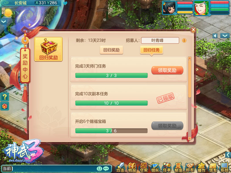 青河镇的懵懂,彩虹桥的心欢。红娘面前许下山盟海誓,于临仙镇与他结义金兰,神武陪玩家走过春秋,带来的也不止快乐。神武中的NPC们同样也深深思念着给青河、傲来、临仙带来生气与活力的玩家们,期待能在《神武3》中久别重逢。 重温神武岁月 细数NPC们的感动陪伴 在神武中,除了一起玩耍的游戏伙伴之外,其实还有不少的朋友在默默关注着你,他们看着你成长,跟熟人问起你的消息,与你相见之时渴望畅谈却又傲娇地让你帮忙跑腿办事。他们就是神武中的熟悉的NPC们。 回归礼包 福利升级 在《神武3》正式上线之际,我们为每一位老玩家精心准备了回归大礼!所有符合回归条件的玩家上线后将获得一个丰厚的回归礼包,不仅有化龙鼎、头像券等珍贵奖励,还有提供超强卦象的四象神符、蕴含海量储备修炼/威望的炼神瓶、博古典籍等实用道具,助你重返巅峰! 活跃礼盒 珍贵奖励轻松拿 回归玩家上线后即可获得“荣归三界”活跃礼盒,达成一定活跃度时即可获得对应阶段奖励。活跃礼包中包括黄帝内经、高级魔兽要诀等珍贵游戏道具,还有大量帮派红包哦!一边轻松体验《神武3》全新内容,同时累积活跃度赢取活跃度奖励! 回归任务 重温神武回忆 全新回归任务来临,活动期间内,回归玩家完成指定回归任务即可获取奖励。完成师门、参与欢乐派对、在许愿树前许愿等简单任务,即可获得还童丹、修炼丹等好礼!再次重温当年的神武回忆,找到那群能陪你继续走下去的老友! 若与招募玩家一同完成招募任务,还能额外获得金香果、五宝等多重奖励!故友重逢,再次并肩闯荡,一同谱写新的传奇! 招募好礼 故友重逢 玩家招募昔日好友,好友重新登录游戏,填写招募人ID并达到一定活跃度后,招募人便可获得丰厚的回归奖励!一夜暴富的山水玄机图、神兽之灵、坐骑元神等众多豪礼等着你! 此外与回归玩家一同完成招募任务,还能额外获得人物经验心得、五宝等多重奖励!故友重逢,再次并肩闯荡,一同谱写新的传奇! 转门派半价 开启全新征程 活动期间,玩家首次转门派半价优惠!侠客气息叶青峰,或是英武豪迈楚云天,选择你最喜欢的新人物造型;呼风唤雨的东海龙宫,悬壶济世的南海普陀,重新选择门派开启你的全新征程! 关于《神武3》 《神武3》是多益网络2017年推出的全新回合网游,快乐免费、青春相伴。结婚交友、子女养育,有爱萌宠与你并肩作战,足不出户结交四海好友;画面清新、玩法有爱,帮派家庭活动丰富,跨服切磋一起战个痛快。任务探索策略PK休闲交友,总有一样是你的最爱。 了解更多相关信息,请前往http://game.yzz.cn/html/info-6333.html |