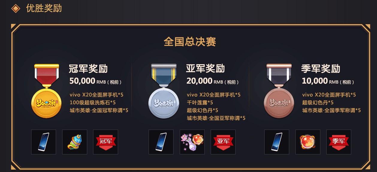 在经历了紧张激烈的海选赛、城市赛和大区赛战斗之后,11月25日,vivo X20《梦幻西游》手游城市英雄争霸赛决赛,就将在春城昆明正式打响!来自四大赛区,校园组和城市组两大组别总共八支战队,将会师于此,向各自组别的全国总冠军荣耀发起冲击!这一次,谁能获得这一终极荣誉呢?敬请锁定11月25日,见证封神一刻! 活动链接:https://my.163.com/2017/csxypk 八强会首,最终决战即将打响 11月18日,vivo X20《梦幻西游》手游城市英雄争霸赛告一段落。这也意味着本届赛事两大组别四大赛区的八支冠军战队人选已经尘埃落定。这八支战队分别是: 青春校园组:楼外楼队、包中之包队、超级大熊猫队、超机智队。 活力城市组:陈德伟牛B队、深圳有嘻哈队、虫子是条虫队和选择原谅她队。 而在11月25日,他们就将来到云南昆明,在所有玩家的见证下,向冠军荣耀发起最后冲击。 层层选拔,全国总决赛赛制全解析 为了能够在这八支战队中,遴选出最具实力的战队,本届赛事的全国总决赛,将采用双败制形式进行对战,以决出两个组别的全国冠、亚、季军。 在比赛过程中,每个组别的4支大区赛冠军队将进行亮亮对决,其中在胜者组中获得胜利的队伍,将晋级下一轮胜者组战,直至决出胜者组冠军。而在胜者组中失败的战队,将进入败者组,与另外的败者组战队进行对战,在败者组中失败的战队将被直接淘汰,直至产生败者组冠军。 在最后,胜者组冠军和败者组冠军将以3局2胜制进行对战。在比赛开赛时,胜者组冠军对阵败者组冠军时,默认1:0领先。 在这一赛制将直接考验每一支战队的临场心理素质和战术稳定性,并为观战玩家全方位展示不同参赛战队的战术思路。 壕奖待英雄,五万大奖得主即将揭晓 城市英雄争霸赛全国总冠军,并不仅仅是一份无上荣耀。获得全国总冠军荣耀的战队成员,还将获得丰厚的奖励。届时,获得全国总冠军荣耀的战队成员,将拥有5万人民币现金大奖、100级超级洗炼石以及城市英雄赛全国冠军称谓一份,除此之外,vivo还将为其颁发比赛专用机vivo X20。而获得亚军和季军的战队,也将获得人民币现金奖励、千叶莲露、超级幻色丹、比赛专属称谓以及vivo X20全面屏手机等豪奖,以犒赏英雄们在战斗中的出色表现! 很快,vivoX20《梦幻西游》手游城市英雄争霸赛全国总决赛就将打响。而玩家观战团也已经准备就绪,将前往现场,为自己所喜爱的战队加油鼓劲。其他玩家也可以随时关注游戏内的“秋季争霸赛使者”,一线收看全国总决赛赛事,并在此过程中,感受《梦幻西游》手游PVP的乐趣所在! 了解更多相关信息,请前往http://my.yzz.cn/ |