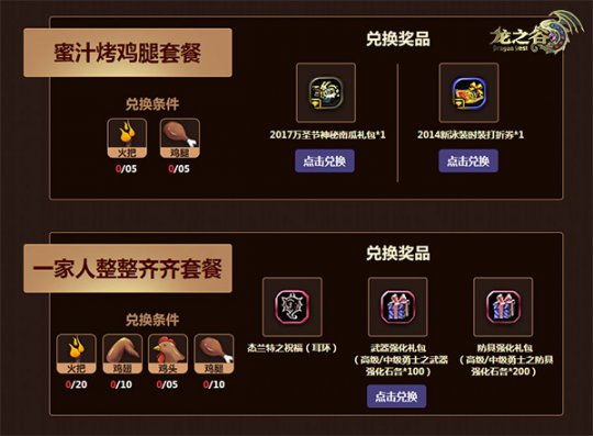 要说现在最IN最流行的事儿,相信许多《龙之谷》小伙伴都会大声说“吃鸡”!《龙之谷》在“百兵之王·觉醒”版本更新后,隆重推出大型全民“一起次鸡”活动,除了可以获得海量强化材料等道具外,在活动页面集齐鸡的各个部位,还可以兑换到时装,礼包,甚至L级杰兰特耳环哦。快来一起了解下这个重磅福利活动吧! 完成活动任务 抽好礼机会手到擒来 作为《龙之谷》年末举办的巨型福利活动,本次吃鸡活动旨在让玩家能轻松获得成长机会。玩家登录活动页面绑定需要参与活动的95级角色后,通过登录游戏、参与黑暗宴会厅(混沌)≥1次、通关屠戮者巢穴任意地图≥1次、通关爆炎之火山巢穴(硬核)≥1次,就可以分别在次日获得一次抽奖机会。也就是说,前一天完成4个任务的话,第二天就能拥有4次攒鸡机会咯! 猛料太多 金币副本入场券就问你要不要? 通过页面抽奖,谷迷将有机会获得放大镜、复活书、强化材料等超实用游戏道具,而更令不少勇士垂涎欲滴的,当然要数某几项重头戏——强化之锤、幻龙逆鳞(L级)、L级称号,统统都让人忍不住搓动双手。再睁大眼睛瞧一瞧,嘿!还有黄金小妖精金币副本入场券,不少谷迷是不是仿佛听到了金币叮叮当当跑进腰包的美妙声音?! 一家人就要整整齐齐 吃“烤鸡”就能兑换壕礼 在抽奖环节中,如果能抽到心宜的道具固然很哈皮,不过如果偶遇了“鸡翅”、“鸡腿”等美味部件,也一定要狠狠夸一夸自己的手气哦!因为攒够一定数量的美味套餐,就能在页面兑换点券类道具。甜美维尼交换券,可爱百分百的的维尼衣服、帽子,泳装打折券,万圣节礼包,统统可以任性换换换。达成终极烤鸡套餐后,还能兑换到《龙之谷》武器/防具强化大礼包,以及牛X的杰兰特之祝福耳环。能镶嵌2枚龙玉的耳环,相信肯定能让不少强大的勇者炒鸡心动! 找人一起吃鸡才够爽 完成任务领海量点券 一个人独乐乐,不如一堆人共狂欢。在活动页面生成专属邀请链接邀请好友回归,一起做任务抽大奖,如累计绑定的回归好友人数≥5人,且回归好友中至少有5人的抽奖次数各≥5次,邀请人就可以在页面点击领取1000点券哦。点券限量发放,先到先得! 《龙之谷》年末送大礼,吃鸡就能领奖励。杰哥耳环、幻龙逆鳞、强化之锤、海量点券,超丰富奖励就等你来抱走,赶快叫上小伙伴,一起来吃鸡吧! 《龙之谷》“百兵之王·觉醒”版本更新! 萌骑士终迎觉醒!机动提升攻击更强大! 95级装备开二阶!属性成长能力获蜕变! 宴会厅和狩猎日!战斗升级勇者夺奖励! 贝勒尼卡变身套!集齐六件变市长大人! 感恩节线上活动!轻松参与也有好礼拿! |