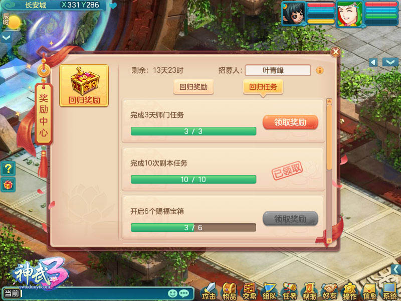 灵动人物、回合战斗、多元社交、休闲养成,打造纯粹快乐的游戏体验!多益网络年度回合新作《神武3》11月24日正式公测,“缘起青河”、“梦回长安”、“情系傲来”、“忆满临仙”新服火热开启。与此同时,世界红包、活跃有礼、登录赢iPad、全服抽神兽四大公测盛典活动火爆登场,千万红包雨大派送,神兽豪礼享不停,更有海量游戏周边及公测专属道具等你来拿! 千万红包 四大公测盛典活动来袭 开测首周千万红包雨火爆来袭,每晚准时在线即可参与抢红包,海量信誉等你来拿,更有机会抢到全新精美周边;体验《神武3》精彩内容,积累活跃度领取四重活跃度礼盒,紫灵玉、银河加护、高级魔兽要诀珍贵奖励送不停,更有全新道具“固神丹”助你打造极品宠物。 《神武3》公测神秘大礼倾情回馈,活动期间所有玩家在完成活跃礼盒、剧情新体验、转换角色造型等一系列活动后即可抽取最终的神兽大奖!活动期间每个新账号创建的首位角色还可参与“登录赢iPad”活动,体验《神武3》丰富玩法,累积登录天数和活跃度即可赢iPad、Beats耳机和京东卡等丰厚奖励!与此同时还可开取金银铜三色宝箱,百分百获得活动专属道具奖励! 五大礼包 双色小昕伴你闯荡三界 四大公测盛典活动同步开启,五大礼包海量福利乐享不停,幻彩花、固神丹、双色小昕、满技能高资质龙女丰厚奖励拿到手软。即日起至12月7日,《神武3》新手礼包免费领取,经验书、强力宠物装备、珍稀双色小昕零门槛获得。 体验《神武3》全新内容,游戏内奖励中心领取升级礼包,各等级段全套装备、满技能高资质龙女陪你快速融入游戏生活。与此同时,玩家下载并登录战盟即可领取《神武3》战盟礼包,关注《神武3》微信公众号即可领取微信礼包,藏宝图、洗宠券、还童丹,实用道具送不停。除以上四种礼包外,玩家还可以在游戏内购买领取开测礼包,内含珍贵道具幻彩花、通灵符、固神丹,助你打造最完美宠物。 转换造型体验剧情 多重福利诚意满满 除了丰富的活动外,《神武3》开测盛典还有诚意满满的多重福利!完成免费角色造型的转换后,便可以领取全新道具砺剑石并返还染色材料!全新道具砺剑石可以使武器转换成指定的造型,武器颜值和属性兼得! 在快速冲级体验新内容的同时,也可以细细体验《神武3》的游戏剧情。根据引导完成任务还可获得前所未有的中国结队徽!独树一帜、个性彰显,想要新款中国结队长图标的玩家千万不要错过! 在活跃度礼盒中还可获得一个充值限时优惠BUFF,在该BUFF下的首笔充值可获得25%的金币返还,机不可失失不再来!在公测活动期间,转门派还可享受半价优惠! 回归五重福利 豪华礼包等你来拿 值《神武3》火爆公测之际,伴随着全新内容上线,《神武3》正式推出“故友重逢,荣归三界”回归五重好礼。即日起至2018年1月25日,60级以上、官职达到九品且15天以上未登录的角色,首次登录游戏即可获得回归礼包,内含化龙鼎、头像券等珍贵奖励,还有提供超强卦象的四象神符、蕴含海量储备修炼/威望的炼神瓶、博古典籍等全新实用道具。活动期间,回归玩家达成一定活跃度时即可获得对应阶段奖励,括头像券、修炼丹等奖励,还可能获得黄帝内经、高级魔兽要诀等珍贵奖励。 全新回归任务开启,活动期间内回流的玩家完成师门、参与欢乐派对、在许愿树前许愿等简单任务,就有机会获得神兽之灵、四级护符重置丹等好礼。与此同时,“招募有礼”活动开启,好友重新登录游戏,填写招募人ID并达到一定活跃度后,招募人便可获得丰厚的回归奖励。与招募回归的昔日好友一同完成招募任务,还能额外获得人物经验心得等多重奖励,更有山水玄机图、神兽之灵、坐骑元神等众多豪礼相送。 关于《神武3》: 《神武3》是多益网络2017年推出的全新回合网游,快乐免费、青春相伴。结婚交友、子女养育,有爱萌宠与你并肩作战,足不出户结交四海好友;画面清新、玩法有爱,帮派家庭活动丰富,跨服切磋一起战个痛快。任务探索策略PK休闲交友,总有一样是你的最爱。 |