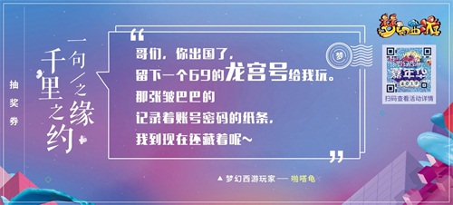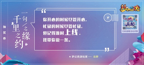 12月9日~12月10日,梦幻西游2017嘉年华将在上海世博中心银厅拉开帷幕!为了迎接这一盛会的到来,梦幻西游开启“一句之缘,千里之约”活动,邀请亿万玩家前来分享自己的游戏心得。梦幻西游精选了365句玩家告白,将其印刷在嘉年华抽奖券上。届时,每一位前往嘉年华的玩家,都可以在现场根据抽奖券上的告白词,寻找到有缘人,与TA书写一段新的游戏奇缘。 全民晒券,梦幻西游2017嘉年华开幕倒计时 对无数玩家而言,梦幻西游不仅仅是一个游戏品牌,更是他们青春的美好回忆。随着抽奖券陆续寄出,梦幻西游2017嘉年华也进入了最后筹备阶段。现在,不少玩家已经收到了自己的专属抽奖券,他们在微信、微博等社交平台上晒出抽奖券,分享自己的喜悦心情,表达自己对梦幻西游2017嘉年华的无限期待。 友情、爱情,最美真情交织梦幻西游 在过去一段时间里,梦幻西游面向亿万玩家征集真情告白,并从中遴选了365句印刷在抽奖券上。 玩家@王大更 回味道:院里养着一群猫狗兔,你说以后没事做,就在家园静静地看着它们跑来跑去。 玩家@出野 说:你开心的时候尽管开心,忙碌的时候尽管忙碌,但记得准时上线,我带你做一条。 玩家@啪嗒龟 则向兄弟喊话:哥们,你出国了,留下一个69的龙宫号给我玩。那张皱巴巴的记录着帐号密码的纸条,我到现在还藏着呢。 这些点滴记录了梦幻西游的游戏日常,并唤起了亿万玩家的美好回忆。 相约上海,梦幻西游邀你再续前缘 12月9日~12月10日,每一位收到梦幻西游2017嘉年华抽奖券的玩家,都可根据抽奖券上的时间,来到上海世博中心银厅,参与这一年一度的游戏盛典。届时,玩家可以根据抽奖券上的告白,找到那个与你配对的有缘人,参与神宠抽奖活动。相信“一句之缘”的奇妙缘分,一定能让玩家们浪漫相遇。 很快,梦幻西游2017嘉年华就要在上海拉开帷幕。如果你已经收到了嘉年华抽奖券,那么不妨现在就将抽奖券“晒”到各大社交平台上,也许在此过程中,你能提前邂逅命中注定的另一半,与TA一起,共赴上海之约! 了解更多相关信息,请前往http://xyq.yzz.cn/ |