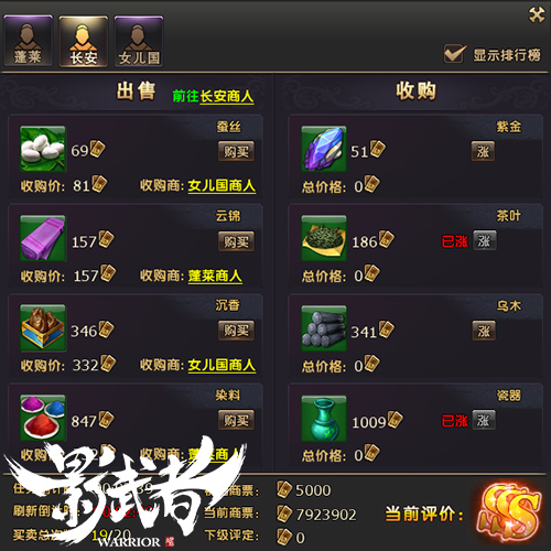 一转眼双12就快到了,年终岁尾该囤年货啦!然而,在双11刚刚剁手又欠了信用卡的你,是不是有点囊中羞涩?俗话说:天生我材必有用,千金散尽还复来。没钱怎么办?没关系,来《影武者》跑商赚点过年钱吧!下面,小编来教你如何在《影武者》跑商玩法中轻松赚大钱吧! 【过年没钱买年货?跑商帮你圆SSS赚钱之梦】 进入《影武者》游戏后,35级以上的玩家到长安城的“跑商管理员”处等待帮会统战指挥,开始接任务。20分钟内跑完20环,根据跑商获得的钱财获得跑商评价,评价从D级、C级、B级、A级、S级、SS级、SSS级共7种,评价越高,奖励也就越高。 【小秘诀相助 1分钟上手变老司机】 在《影武者》跑商路线中,一共有3个跑商点,蓬莱,长安和女儿国。为了快速到达跑商点,可以使用回城卷轴,也可以抄近路来缩短时间。节约的时间,会帮助你更好的掌握买卖的节奏。商品价格的高低决定跑哪趟货更划算,差价越多赚的越高。合理计算差价也会帮助你赚更多哟! 【实现共赢 跟团跑商提升80%概率获得SSS】 在《影武者》中跑商还有一个秘诀,就是听从统战的指挥,与帮会其他成员共同完成,这样会大大提升SSS宝箱获得的概率,最高提升80%概率。因为个人获得降价卡和涨价卡的概率是很低的,跟着大部队则不同。众人拾柴火焰高,指挥会对某个商品做出涨价和降价的调整,以保证所有人获得最大的利益。 《影武者》本周六下午14:00新服开启,快去游戏里大赚一笔,备战双12吧! |