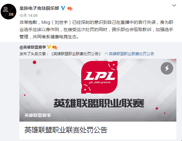 上月,英雄联盟职业选手RNG打野麻辣香锅(Mlxg)在直播时,因发表侮辱性言论引起极大舆论争议。今日,官方宣布了对Mlxg的处罚告示:罚款1万元人民币。 事件回顾:在11月17日的直播中,Mlxg玩凯南上单,在赶往上路时发现自己方的螳螂因为操作不当被吸血鬼单杀。于是Mlxg就随口说了一句“兄弟农民”,这句话让直播间很多粉丝纷纷疑问。Mlxg解释“农民就是SB的意思”,不过说完瞬间就意识到了问题,当即表示“用词错误用词错误”。虽然Mlxg事后及时做出了道歉,但当时已经引发了舆论的漩涡。 因为LOL全明星赛近在眼前,当时不少粉丝担忧Mlxg可能被取消全明星资格。不过结果我们也已经看到了,Mlxg不但如约参加,而且为LPL赛区夺得了首次全明星赛冠军!或许是官方也不想他在全明星赛的发挥,所以在赛后才公布处罚公告。 MLXG所属俱乐部“皇族电子竞技俱乐部”对此处罚也做出了回应,表示会吸取教训,加强选手管理。而据透露,由于Mlxg此刻还在回国的飞机上,本人未能第一时间表态回复。 最后,众粉丝也纷纷表示理解官方的动作,认为“确实该罚”。毕竟作为公众人物,要起到榜样的作用,虽然是随口一说,也得注意自身形象。 更有玩家表示:“洛杉矶的大龙已经惩罚他了”,这个调侃也毫无毛病。 对于电竞选手来说,1万元的罚款也许不痛不痒。不过罚款不是目的,主要是希望电竞选手能够在青少年中树立好形象,传播正能量。官方的这波处罚小编认为是“拿捏有度”的,你们觉得呢? |