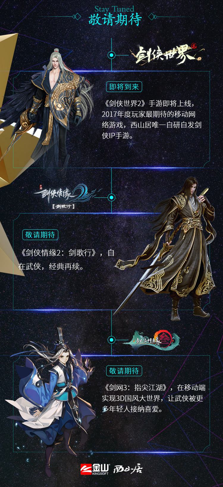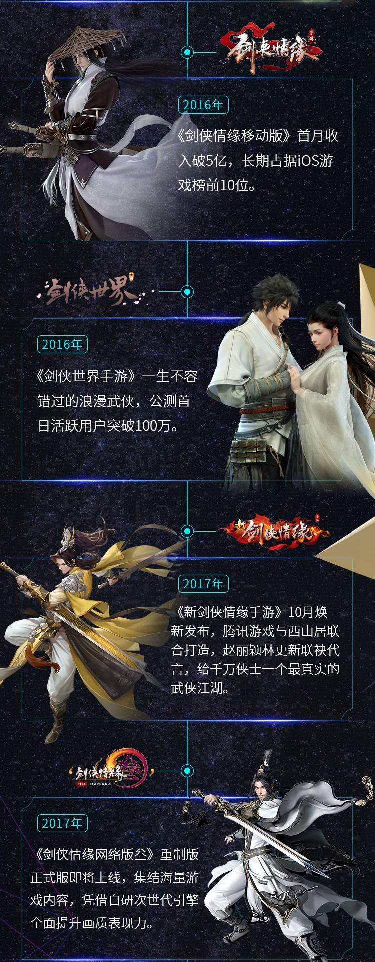 剑侠情缘二十载,初心不负江湖路!剑侠情缘20周年庆典将于12月30日在珠海大剧院盛大开幕,众星倾情加盟,海量IP内容揭晓,跨界文化合作助阵,活动现场精彩不断。从1997年西山居发布单机版武侠PRG游戏《剑侠情缘》至今已有二十年,历经单机、网游、手游三大时代,创造无数经典传说,承载着你我的剑侠青春,今日一起重温剑侠情缘20年传承更迭,共忆江湖路。 庆典时间:2017年12月30日19:00 庆典地点:珠海大剧院 【故事从这里开始】 剑侠江湖自1997年拉开帷幕,这一年《剑侠情缘 单机版》面世,成为国产武侠游戏力作。2000年,《剑侠情缘贰 单机版》推出,开创国产RPG先河,以20万套销量创下当年国产游戏销量奇迹。2001年,《新剑侠情缘 单机版》发布,故事主线不再是“以情感人”,新的武林传奇出现。同年《剑侠情缘外传:月影传说》推出,让国产武侠成功走出大陆市场。 【网络游戏时代来临】 西山居第一部网络游戏于2003年诞生,《剑侠情缘网络版》公测,扛起国产武侠网游大旗。2005年,《剑侠情缘网络版贰》推出,使用真人动态捕捉技术,真实热血武侠江湖风靡全国。2008年,《剑侠世界》火爆公测,创造在线50万的佳绩,拿下最受期待武侠网游奖,巩固了“剑侠情缘”品牌在海外市场的地位。2009年,《剑侠情缘网络版叁》横空出世,以领先时代的电影级画质开启中国武侠的新纪元。 【开启剑侠新篇章】 2016年剑侠情缘系列首款手游推出,开启新篇章。《剑侠情缘移动版》首月收入破亿, 打造出玩家可随时随地闯荡的江湖世界。同年,一生不容错过的浪漫武侠《剑侠世界手游》公测,首日活跃用户突破100万。2017年,《新剑侠情缘手游》焕新发布,由腾讯游戏与西山居联合推出。《剑侠情缘网络版叁》重制版正式服即将上线,凭借自研次世代引擎全面提升画质表现力。 【未来,敬请期待】 不远的未来,剑侠情缘系列游戏战线将全面铺开,多款手游即将推出。西山居唯一自研自发剑侠IP手游《剑侠世界2》全新上线, 《剑侠情缘2?剑歌行》再续经典,打造自在武侠,《剑网3?指尖江湖》将在移动端实现3D国风大世界,敬请期待! 20载春秋交替,7300次昼夜变换,诸位侠士推动着岁月变迁,共同铸造了一个充满侠义与豪情的真实江湖,感谢一路相伴。未来,期待与侠士们携手共续剑侠缘。 |