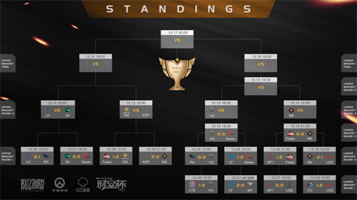 随着12月10日败者组第三轮对战的落幕,由暴雪官方授权,网易CC直播独家创办的《守望先锋》时空杯2017年终总决赛八强战队终于出炉:VG、Lunatic-Hai、X6-Gaming、Element Mystic、KongDoo Panthera、Meta Athena 、Seven、Foxes。 现在,让我们来简单回顾下淘汰赛前5日的精彩赛况: 淘汰赛前三日,十六支战队迎来了胜败组的第一轮对决——胜者组由八支韩国战队上演精彩内战:新秀战队Lunatic-Hai在面对具备夺冠实力的RunAway时虽然先失一分,但迅速调整好状态的他们,最终2:1战胜RunAway,率先挺进八强;小组赛就带来惊喜的 X6-Gaming再次出人意料,零封被誉为夺冠热门战队之一的Seven,顺利进入八强决赛;以放狗阵容为长的Element Mystic一度遭到Foxes针对,但凭借强劲的实力和默契的配合,最终展现出狂鼠麦克雷的强势,摘取八强入场券;而Meta Athena虽然已经发挥全力,但最终KongDoo Panthera凭借更强劲的实力,以2:0的比分拿下Meta Athena,跻身八强队列! 败者组则由八支中国战队率先带来首轮内战,最终VG、LF、MT1以及LGD凭借更稳定的实力发挥,顺利进入败者组第二轮,迎战韩国战队!VG虽顶着巨大压力,但双C发挥依旧十分亮眼,最终以2:0横扫韩国劲旅RunAway,成为本届时空杯第一个入围八强的中国战队!此外在12月10日的比赛中,VG再一次以2:0战胜韩国challengers黑马Seven,赢得时空杯四强争夺的机会;而LF、MT1以及LGD在对抗Seven、Foxes、Meta Athena时,双方交战十分激烈,虽然有一战之力,但最终还是韩国战队凭借更胜一筹的实力,赢取了剩下的3个八强名额。至此,VG成为了本届时空杯唯一一支进入八强的中国战队。 12月13日,时空杯年终总决赛八强队伍将再次开启精彩的角逐: 首日,淘汰赛将迎来两场胜者组的对决,由Lunatic-Hai VS X6-Gaming、Element Mystic VS KongDoo Pathera。回看时空杯的对战结果,Lunatic-Hai未曾输过一场,堪称不败金身;而X6-Gaming虽最初不被看好,但渐入佳境的他们却频频带给观众惊喜,究竟Lunatic-Hai与X6-Gaming的强强对决中,谁将继续胜者的荣耀,而谁又将跌入败者组,与中国战队VG进行PK,令人十分期待;而曾经零封韩国国家队的Element Mystic,实力不容小觑,而迎战他们的KongDoo Pathera,作为韩国老牌劲旅战队,实力同样不可小看,究竟谁能手握胜券,敬请锁定网易CC直播,为唯一的中国战队激情打Call! |