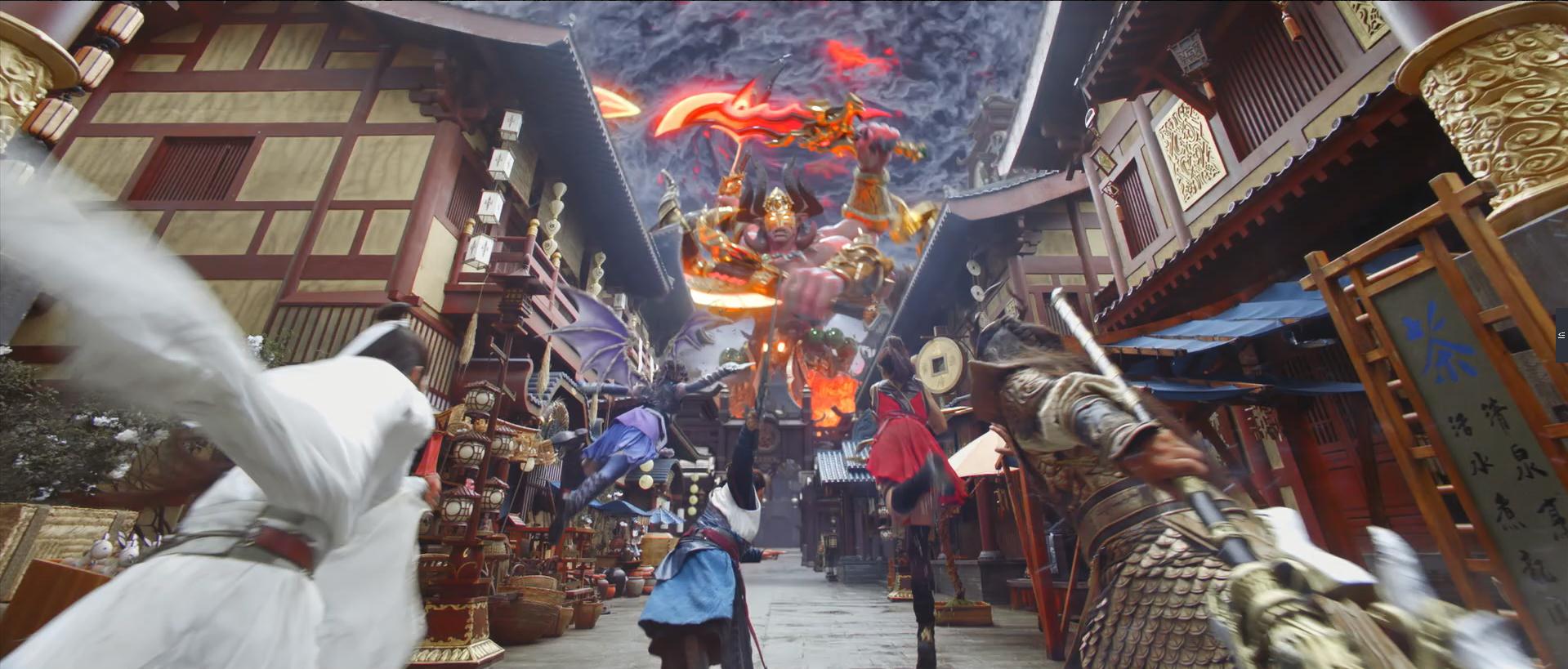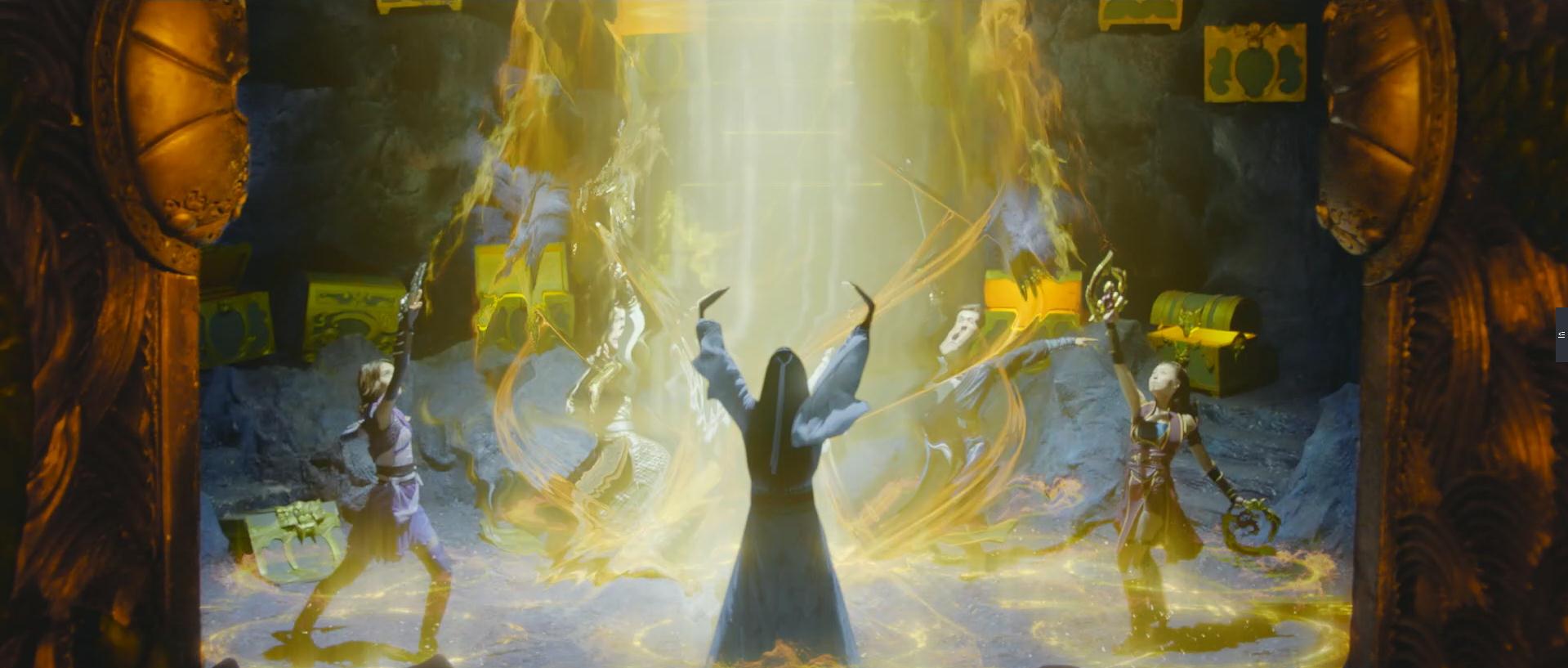 《梦幻西游》影视剧故事讲述了还在读大学的谷翎(陈瑶饰)因为一个游戏与任一侠(龚俊饰)相识,并开始了一段又一段不可思议的游戏经历,而且还无缘无故卷进了兄弟之间的战争。 剧中她们作为游戏高手与肖翰林(刘奕畅饰),龙子澈(陈柏融饰),宴于飞(艾佳妮饰)一起组队,在游戏中与妄图控制一些的反派杀破狼(文渊饰)进行PK。 但是阴差阳错得,大家却都从游戏里获得了超能力,从此正义与反派的斗智斗勇在现实与虚拟之间交替变换。 最后眼看反派召唤蚩尤成功,整个世界即将瘫痪之际,正义之士毅然决然得挺身而出对抗蚩尤!里面有是玩家熟悉的人物和技能,更有玩家熟悉的场景和BOSS,不仅如此,在片花中,我们看到了很多玩家梦寐以求的神宠,变异龙龟,金色的皮肤,外加那坚不可摧的龟甲,上面还一颗深蓝色的大宝石,实现了完美的还原。 图13:变异龙龟(gif)