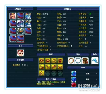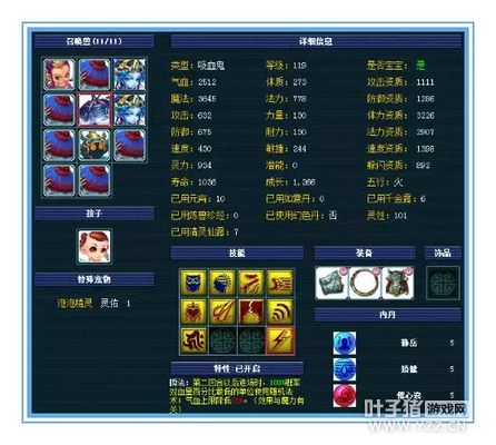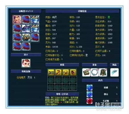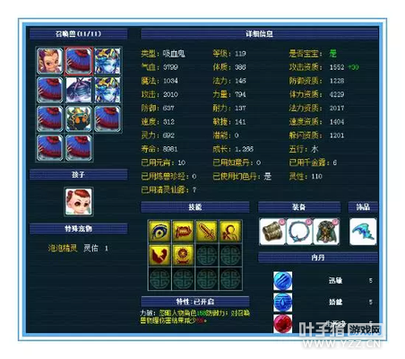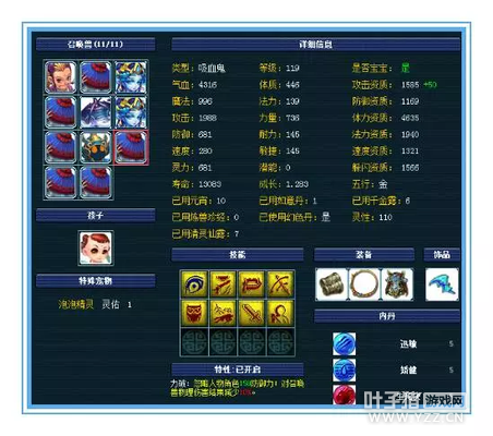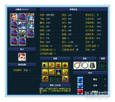 他的11只宝宝中有5只都是进阶110灵性的灵兽。细心的玩家会发现他有3只瞬法须弥宠,这类宝宝对于神威组的PK特别重要,就算在劣势局都有可能用一波接一波的瞬法须弥宠翻盘。