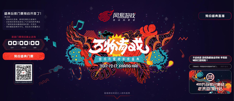 万物游戏,精彩无限!2017网易游戏热爱者年度盛典即将于今日在上海世博创意秀场启幕,网易旗下五十余款游戏将携手众多内容创作者和玩家感兴趣的泛娱乐生活品牌,为玩家呈现一场游戏文化盛宴! 图一:2017网易游戏热爱者年度盛典即将启幕