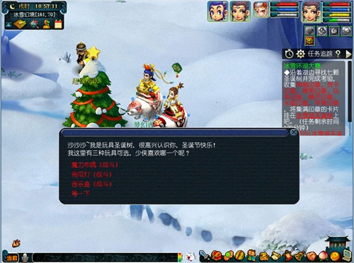 一年一度岁末大狂欢,又迎来了新的惊喜和活动。年末最后一个佳节——圣诞节即将温暖来袭。《梦幻西游》电脑版值此佳节也为全服玩家送上2017圣诞节活动圣诞节,活动时间为12月22日12:00-12月26日12:00,时间有限,奖励无限,赶快一起在体验岁末圣诞狂欢Party吧! 首届“环湖冰雪大赛”开启 双人组队寻祝福 叮叮当,叮叮当~铃儿响叮当~冰雪幻境今年将举办首届“环湖冰雪大赛”。活动期间,玩家(≥30,2人组队)可在长安城(236,118)圣诞节使者处传送至比赛场地“冰雪幻境”参与比赛,玩家可以根据卡片上提供的线索,沿着湖边寻找七棵圣诞树并收集七枚印章,将集满印章的卡片挂在冰雪湖中心的圣诞树上,并许下心愿吧! 铃儿叮当 贺卡传情 年圣诞节活动期间,玩家(等级≥30级)在位于长安城(236,118)圣诞节使者处领取圣诞贺卡。打开贺卡,选择画笔和墨水,在贺卡空白区域可以自由涂画,选择工具栏的“图案”,可以尝试贴图和涂鸦玩法哦。贺卡编辑完成后,记得写上祝福语,然后送给游戏内的好友吧!友情提示:赠送贺卡前记得前往少侠所在的门派场景内盖上邮戳哦。 好东西当然要分享,成功赠送的贺卡可以上传至个人空间,少侠可以浏览其他玩家上传的贺卡,如果喜欢的话就点个赞吧。贺卡被点赞一次可获得一枚铃铛,活动结束的时候(活动截止时间12月26日12:00),铃铛数排名全服前十的作品可以领取一份丰厚的奖励,最高可以得到150级制造指南书和百炼精铁一套(项链、铠甲、腰带、鞋子随机),赶快来参与吧! 据说,圣诞节收到贺卡祝福的小伙伴,新的一年都会有好运哦~ 圣诞老人常出没 考验玩家送豪礼 圣诞节活动期间每个整点及三十分,圣诞老人将会出现在大唐国境、西梁女国、宝象国、建邺城、长寿村等地中的任意3个场景。圣诞老人似乎跟大家开了个玩笑,场景中出现了好多一模一样的圣诞老人,似真似假。玩家可以组队去寻找,快去看看谁才是真正的圣诞老人,因为好多礼物在等着你哦! 堆雪人除窃贼,口袋版赢圣诞礼物 圣诞节在白雪皑皑的雪地里和朋友一起嘻嘻奔跑堆雪人是一件再美不过的趣事,在口袋版中葫芦幻境下起大雪,筑起一座冰雪秘境。参与冰雪探秘,收集6个材料即可成功堆起雪人,获得丰厚奖励。其中如果玩家当前拥有材料总数<60,则开启任意葫芦均100%获得一个材料。点击界面左侧任意材料,即可参与游戏,游戏成功后可以获得对应材料。集齐一套共计6个材料,即刻兑换奖励。 圣诞老人降临口袋幻境,却意外被妖魔邪祟发现,并偷走带来的礼物。各位少侠赶紧帮忙抓住窃贼,夺回圣诞礼物。玩家可在主界面——“副本”界面,选择“圣诞除贼”开启副本。 了解更多相关信息,请前往http://xyq.yzz.cn/ |