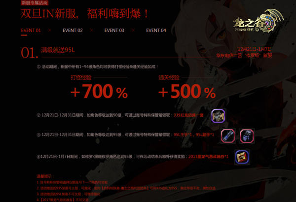 新服开启时间:12月21日12:00 新服坐标:华东电信二区,新服“修罗场” 自从《龙之谷》官网在11月末上线了黑暗系刺客主题站后,“男神”、“帅炸”、“打call双击666”等等留言如潮水般涌向留言墙,到目前为止收获的万余打call内容也代表了这个新职业在玩家心中的超高期待度。今天,“修罗场”新版本正式更新,《龙之谷》新职“黑暗修罗”强势登录阿尔特里亚大陆,新职业主题曲“刺破黑暗”燃爆开唱,全网视听!而重磅回归的迷雾巢穴在难度提升至95级后,也将会为所有谷迷带来超爽战斗体验。2017圣诞节时装、三件套、驯鹿坐骑等商城新品,更是将为铃儿响叮当的雪夜中再多增几分浪漫的气息。 黑暗修罗全面入谷 新职业主题曲燃爆开唱 作为万众瞩目的外传新职业,黑暗修罗职业在版本更新前期便已经收获无数谷迷的心。作为一个力量、敏捷型的物攻职业,黑暗修罗所具有的高攻击能力,其畅爽的动作性能被全面强化,谷迷在实际战斗时,将更能体验到酣畅淋漓之感。而作为黑暗修罗新职业主题曲,这首“刺破黑暗”由Mars毒药和信乐团的傅超华共同演绎,向所有谷迷传达的,便是无所畏惧,挑战自我,即便前路艰难满是荆棘,也要有一份永不服输的精神,铸就属于你我的荣耀。这也与黑暗修罗新职业“面对命运绝不屈服,为了守护约定而最终征服黑暗”的背景交相呼应。 围观新职业主题曲>>> 迷雾巢穴重制回归 天下第一勇士大会新赛季 畅快战斗,是《龙之谷》所有谷迷的最核心渴望。在今天版本更新后,曾经令无数勇者gg复gg的迷雾巢穴也将重制回归,难度提升至95级巢穴水平,当年的老司机们是不是还能hold住这个巢穴中的各类大小怪物?而小萌新们可要做好充分的准备功课,不然,在挑战高难关卡时,“翻车”或许将成为大家很长一段时间里的扎心关键词。平衡模式的天下第一勇士大会也将再次开启全新赛季,四人通关后还有隐藏挑战在等着谷迷们,赶快完成每日任务获得勇士大会入场券,去开启宝箱领取豪华重磅奖励吧! 圣诞节新时装 浪漫圣诞就要美美哒 在每年的圣诞节,《龙之谷》都会有圣诞STYLE新时装上架,浪漫主义者们往往成为了一波又一波的拥趸。本次新版本中推出的2017圣诞款时装,在外观设计上加入了雪绒花元素,代表圣洁的白色,让整套时装看起来十分唯美。而武器自带的飘雪效果,也在圣诞夜中营造出静谧的感觉,忽隐忽现的雪花和悠然的光芒,温馨而美好。 冰蓝三件套和爱啃坚果的Q萌精灵 统统不容错过 站街的时候,如果没有几个大翅膀来花式装扮自己的话,势必会有点小纠结。在《龙之谷》“修罗场”版本更新后,温馨圣诞之冰蓝三件套就将为大家带来又一对超巨型翅膀。蓝色如沉静幽深的远空,白色如细腻飘忽的浮云,展开便是霸气巨翼,收拢便能小巧玲珑。相信带上这对翅膀,一定会为大家在圣诞节里收获不少的视线和关注哦!超Q萌的松鼠精灵也在这个圣诞节为我们带来惊喜,小短腿跑呀跑,啃一口松果,满满的幸福味道。 线上活动全面开启 新服福利好到爆炸 版本更新后,全区线上活动将正式拉开帷幕。从今天开始,包括外传刺客“黑暗修罗”在内的所有外传职业,统统限时开放创建!错过了黑暗复仇者、黑暗死神、银色舞灵等等强力外传职业创建活动的你,赶快抓住这个机会,将TA收入囊中吧!当然,作为本次重头戏的新职业,如账号内拥有任一95级角色,创建“修罗”角色后即可获得一次直升90级的机会!其他还有登录送宝盒、升级送点券、收徒送幻龙逆鳞、材料雨和买赠活动等等缤纷奖励在等着大家。新版本“修罗场”的同名新服将在今日12点整开启,参与新服活动,还能获得93S幻龙防具,95L主副手、特武交换券……猛料好料数都数不过来,更多活动,请登录官网查询哦! 2018《龙之谷》冒险家派对 更新爆料音乐盛典精彩不间断 很快就要到2018年了,作为《龙之谷》的新年盛事,2018《龙之谷》冒险家派对将在1月20日在上海智力产业园进行大型线下狂欢聚会。新一年的版本更新计划爆料,将为谷迷宣布国服在2018年的各类大型重磅更新内容。当天派对活动中,玩游戏拿周边,公会颁奖,PVP挑战赛,异业合作计划,晚间音乐会等等,玩家红人,明星大咖,齐齐登场。嗓音堪称自带后期的知名歌手“小魂”将携实力女生唱将“未夏”为大家重新演绎《龙之战歌》,《龙之谷》七周年主题曲“绚烂冒险”原唱易玲意与胡胜凯也将亲临现场,再次为大家唱响最初的感动。当日,还有钢琴家及RAP、DJ手为大家进行耳熟能详的《龙之谷》bgm的改编串烧,视听体验长达30分钟哦!这场盛况空前的音乐会,绝对值得前往现场亲自感受。 《龙之谷》今日“修罗场”版本更新,新职业“黑暗修罗”强势入驻阿尔特里亚大陆,新职主题曲全网播出,主唱Mars毒药还将在今晚20点进行狂撒游戏福利的直播哦!记得届时登录《龙之谷》官网,去赚波大壕礼吧! 《龙之谷》“修罗场”版本更新! 外传刺客强势来袭!黑暗修罗浪到底! 迷雾巢穴重制回归!勇士大会送奖励! 圣诞时装温馨美腻!冰蓝套装展巨翼! 新款麋鹿双人坐骑!松鼠精灵萌萌滴! 新服活动福利爆棚!线下派对欢迎你! 了解更多相关信息,请前往http://dn.yzz.cn/ |