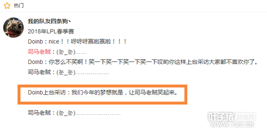 虽然老贼没有对这条微博做出回应,但是网上的段子手已经开始秀起了操作,脑补出了明年春季赛彩后采访doinb选手的画面,可以说是看到文字就能自行脑补出画面。