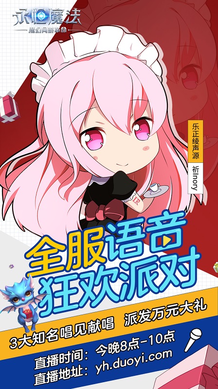 超豪华阵容对决!多益网络旗下魔幻网游《永恒魔法》全新内容“龙域魔影”正在火热公测中,首个全服狂欢派对亦将于今晚8点隆重开启。3大唱见CV倾情加盟、深情演绎天籁之音,特邀玩家嘉宾情歌献唱、嗨歌对飙,更有Beats耳机、千元京东卡、雷蛇键鼠等万元豪礼任性派!年终盛典不容错过,一起来听音乐、拿奖励吧! 年度听觉盛宴 万元豪礼送不停 《永恒魔法》首个全服语音狂欢派对将于今晚8点准时揭开帷幕!知名唱见、公会会花等多名重量级嘉宾齐齐加盟,倾情演唱年度好曲,实力打造年度永恒好声音。还有奇妙有趣的互动小游戏、派对狂欢100%中奖的万元豪礼约定你呦! 3大唱见加盟 倾情演绎永恒新歌声 来自乐正绫声源的治愈!知名动漫歌手、Vsinger旗下虚拟歌手乐正绫声源、多部动画及游戏大作主题曲演唱者祈Inory,今晚将空降《永恒魔法》狂欢晚会,她那甜美又极具辨识度的声线,那空明而又沁入心脾的高音,相信一定可以给各位听众带来一场非凡的年终狂欢晚会!届时还有祈Inory的绝版签名周边派送,一定不要错过噢! 狂欢晚会的第二位重量级嘉宾王胖子,是月声配音社CV、B站知名翻唱UP主,代表作有《万物死》、《故人叹》、《牵丝戏》等,常年出没于动漫音乐节和各种二次元活动,也许你没见过他,但可能歌单列表就有他的作品! 你是否感受过百变声线的魅力?狂欢派对第三位嘉宾少年霜,知名音乐博主,其百变声线吸引了不少听众,代表作有《怪兽大作战》、《梦回小桑村》等,同时也是漫画《星梦偶像计划》卢蕊的配音。很是期待霜霜今晚的演唱曲目! 魅力女神榜首 空降献唱亲密互动 除了3大知名唱见,《永恒魔法》线上狂欢晚会还邀请了多名公会大佬、公会会花。届时女神榜榜首将与诸位永恒冒险者亲密互动,还将带来嗨翻全场的激燃歌曲;公会大佬也将首次献唱动人情歌,相信那首脍炙人口的《成都》定能泛起不少听众的内心波澜! 听觉盛宴、互动游戏、万元豪礼,《永恒魔法》线上狂欢派对誓将快乐进行到底!快来体验《永恒魔法》全新内容“龙域魔影”,体验全服语音狂欢派对吧! 关于《永恒魔法》: 《永恒魔法》是多益网络最新研发的纯正魔幻冒险RPG,开启一个巨龙与天使并存的魔幻史诗世界。《永恒魔法》包含影视级流光视觉画面、6大职业多姿态自由切换、组合式变形定制技能、动作感十足的交互式副本、多维度热血大战场、奇幻萌动的宠物等特色。让玩家享受与好友兄弟,一起战斗竞技、热血开荒、探索世界的乐趣,体验一场非凡的自由冒险之旅! 了解更多相关信息,请前往http://game.yzz.cn/html/info-2153.html |