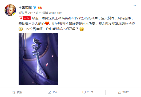 经常关注《王者荣耀》新英雄消息的玩家都知道,每次官方让玩家“猜英雄”的时候,就代表有新英雄即将上线。昨晚,《王者荣耀》官方微博发文“每到深夜王者峡谷都会传来悠扬的琴声”,并配了一张“琵琶”的图片,这是不是在向玩家暗示新英雄的武器是“琵琶”呢? 对此,不少玩家猜测新英雄是许久没有消息的“杨玉环”。杨玉环最早是出现是在2016年年初的体验服,因为侵权被官方下架。随后名字被改为琳琅,再从琳琅改为现在的霓裳,武器也在古琴和琵琶之间摇摆不定。 本次消息的曝出,是否暗示着杨玉环将于近期上线正式服务器? 目前体验服隐藏的杨玉环技能介绍: 玩家们对于新英雄的武器并没有太多关注,反而对英雄名称的关注度很高,大多数玩家都希望新英雄能继续叫“杨玉环”。 不知道新英雄在正式上线的时候,会给玩家带来怎样的惊喜呢? 了解更多相关信息,请前往http://sy.yzz.cn/wzry/ |