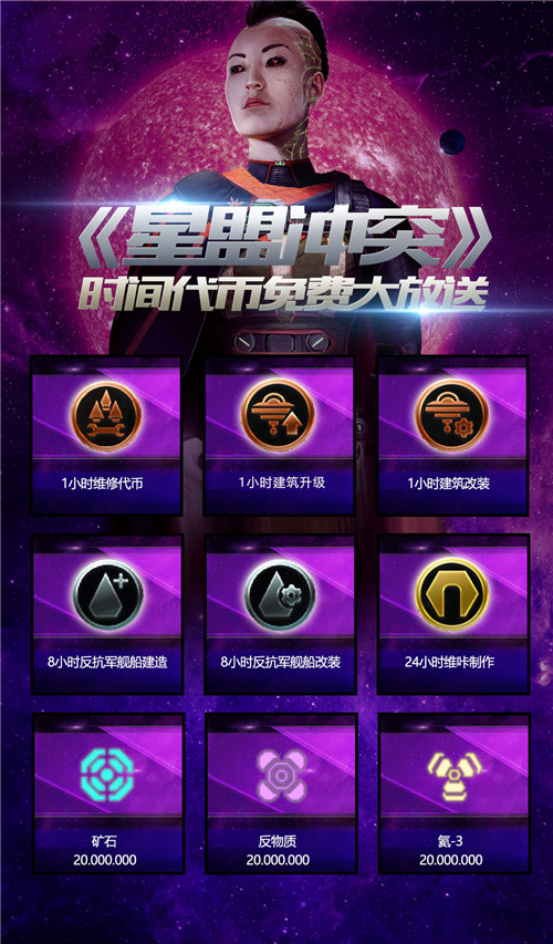 反抗军与“钢铁之星”刚刚一起联手击败了维咔警卫军“主教”的阴谋,为表彰各位指挥官的英勇事迹,凯瑞斯女王七世特意为反抗军送来了“轰动一时的时间代币福利”! 【轰动一时大福利】 本次活动期间(1月9日-1月12日),每日登录游戏后即可在游戏中的贸易站,消耗矿石、氦-3、反物质各100兑换超值奖励。 轰动一时《星盟冲突》时间代币免费大放送内容如下: 第一天(1月9日)1小时舰船维修时间代币X1、1小时建筑升级时间代币X1、1小时建筑改装时间代币X1、反物质X500W、氦-3X500W、矿石X500W。 第二天(1月10日)8小时反抗军舰船建造时间代币X1、反物质X500W、氦-3X500W、矿石X500W。 第三天(1月11日)8小时反抗军舰船改装时间代币X1、反物质X500W、氦-3X 500W、矿石X500W。 第四天(1月12日)24小时制作时间代币X1、反物质X500W、氦-3X500W、矿石X500W。 除此之外,《星盟冲突》运营团队非常重视玩家们对新版本的游戏体验,对此,为了鼓励帮助更多的星盟反抗军指挥官。今后,每周二至周五的新手活动期间,将会放出各种阵营的时间代币供玩家选购,本周已开放反抗军舰船时间代币,喜欢的指挥官千万不要错过。 铁星的盟友已经抵达,全军出击,击败维邪恶的咔警卫军! 关于《星盟冲突》 《星盟冲突》这款曾经在全球各大应用商店连续171次的推荐,由国际知名游戏开发商KIXEYE研发,电魂网络代理的精品太空即时战略网游,目前在中国也获得了苹果App Store 精品推荐与TapTap编辑推荐!此时,开启你的全新未来世界之旅!以上提到的仅仅是《星盟冲突》所能提供的丰富体验中的一部分,更多精彩福利等待你在游戏中亲自发掘! 了解更多相关信息,请前往http://game.yzz.cn/html/info-5290.html |