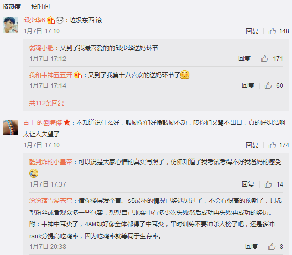 谈起韦神,相信各位吃鸡玩家并不陌生。作为前LOL职业选手,韦神转战绝地求生后,凭借超强的枪法和意识迅速成为了吃鸡届的明星,甚至在亚洲邀请赛勇夺亚军,堪称焕发第二春。 但近日,在绝地求生官方举办的的PSS世界赛中国区预选赛中,韦神率领的4AM战队表现不佳,倒数第一惨遭淘汰。 事实上,自韦神跳槽虎牙后,状态便有所下滑,尤其在直播时,尽管时而会有逆天操作,但也经常落地成盒。在这次预选赛上,被寄予厚望的4AM战队失误连连——不但出现撞死队友卡帝的操作,韦神在选位上的指挥失误,也导致战队被Armani架枪团灭。 电子竞技,菜即原罪。赛后,韦神的微博出现了不少质疑甚至嘲讽韦神的言论: 当然,也有理智网友分析失利最大的问题是战术上“故步自封”。 昨日,韦神在直播中针对网上的各种言论进行了回应。 首先,对于网友质疑“态度差”、“菜”的说法,韦神没有回避:“这个游戏就是,不是你挂就是我挂,一定要说死了就是我菜,那就说我菜,那你说我态度不好是什么意思?” 其实也能理解,吃鸡比赛永远只有一个队伍最后获胜,剩下的都是输家。如果因为没有吃鸡而否认了全部的努力,会不会有点不公平? 接着,韦神对直播训练赛发表了看法:“其实直播打训练赛很烦,特别是大主播打,稍微大一点的主播,打训练赛,就各种节奏,都是问题,反正死了就是有问题。训练赛不连吃三把鸡,你就是有问题,怎么可能嘛?换谁来都一样。如果真觉得有那么辣眼睛,就别看。” 另外,韦神还吐槽了网络问题:“偶尔断线还没弄好,别人跑过来一点脚步声都没有,AK打我的三级套,血一下子就没了,没办法啊。”对于FPS游戏,网络延迟带来的影响自然不用多说。 而对于网上的“喷子”言论,韦神直言不讳:“有些人真的很烦,就在你直播间什么都不干,就等着你死,死了就开始喷。我们打的不好,就有人出来说:我早就知道了XXX。队伍打得不好不是一个人的问题,队伍打得好也不是一个人的功劳。” 最后,对于被质疑“4AM还在用卡毒边战术”、“冥顽不化”、“落伍”,韦神翻出了比赛录像,展示了4AM经常率先占据圈内中心点,奈何游戏实在“不友好”,每次刷圈几乎都把他们刷出安全区:“求求你们停止对队伍的攻击!” 当然,韦神也说目前队伍已经更换了战术。他的实力有目共睹,我们也有理由相信,曾经的王者之师能够重新归来。 电竞的赛场就是如此残酷。网友的质疑不无道理,但世上没有常胜将军,有高峰也会有低谷。希望韦神和他的战队能够及时调整心态,在职业的道路上越走越远。 |