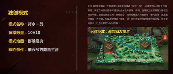 2018年1月10日《群雄逐鹿2》二测不限号盛世开启,二测定名史诗战役,全新游戏模式“背水一战”正式亮相! “背水一战”模式引入全新士气值系统,玩家在对战过程中可通过对击杀敌方英雄、将领、拆除敌方建筑等行为降低敌方士气值,直至摧毁一方主营。 相比传统模式,“背水一战”模式在游戏的策略性上有了显著的提高,玩家不再是单纯的英雄间的厮杀,审时度势的团队配合将会成为游戏的核心玩法。例如围点打援、声东击西、暗度陈仓之类的经典战术,相信很快就会被玩家广泛利用到。 以将领为例,击败敌方将领削弱敌方士气的同时,己方全军上下还能获得强大的“振奋”增益BUFF。击败敌方将领的次数越多,振奋BUFF的层数也越高,同时打击敌方士气的效果也就越高。 玩家既可以互推双方将领,比比谁的速度更快;也可以坚守阵地,看看谁的持久力更强;甚至可以以将领作为诱饵,通过伏击的方式,来针对敌方进攻或支援将领的队伍。 通过进攻与防守之间来回博弈,玩家能身临其境的感受到战场的瞬息万变,战斗热情也自然不断升温。 如果认为《群雄逐鹿2》策略性的提升会影响到战斗的激烈程度,那完全就是多余的。《群雄逐鹿2》通过特有的“金币分享机制”使得玩家不必担心传统MOBA游戏中的“漏刀”问题,实现“发育”与“战斗”的完美融合,玩家从游戏一开始就能尽情享受线上激斗的畅爽体验。玩家还可以通过击杀Boss获得能够提升自身属性的神器,而“击杀掉落机制”使得神器在队伍不停的战斗过程中几经易主,将游戏一步步推向高潮。 《群雄逐鹿2》就是这么一款专注为战斗而生的游戏,想要更猛烈的战斗体验,那就赶紧加入吧! 关注《群雄逐鹿2》微信 了解更多资讯和福利 《群雄逐鹿2》官方网站: 了解更多相关信息,请前往http://game.yzz.cn/html/info-6401.html |