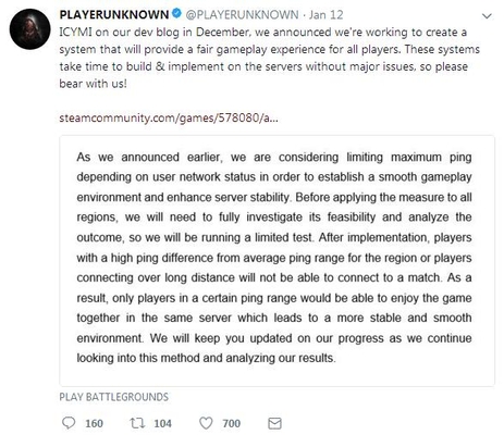 Steam平台公布了最近一周(1月8号到1月14号)的销售排名,《绝地求生:大逃杀》继续领跑畅销榜,成功四十四连冠,当前玩家人数榜始终位列第一。 《绝地求生:大逃杀》在中国的火爆相信无需小编多言,中国用户数量激增的同时,使用外挂的玩家数量也是最多的。 起初,蓝洞在面对“大量”中国玩家使用外挂的态度是这样的: “《绝地求生》中99%的开挂玩家都来自中国”,“中国玩家对使用外挂的行为接受度更高” 不过,在腾讯宣布取得绝地逃生国服代理权前后,官方又改口称: “西方玩家的那种恐惧外国人的心理不太光彩。现在是2017年了!我为这些西方玩家感到羞耻!” 然而,“善变”的蓝洞近日又一改口径,可能是遭受到国外玩家强烈的舆论压力,或者其他原因,蓝洞官方宣布了“新计划”: 《绝地求生》创意总监Brendan Greene在其推特上表示,游戏将会在未来引入一个新系统,对玩家的ping值做出限制。用户的ping值一旦高于服务器平均值,就会受到“特殊待遇”:无法与正常玩家匹配到一起,只能和ping值相近的用户进行游戏。 对于蓝洞来说,对中国用户“一刀切”显然是不可能的,那么采取“伪一刀切”,似乎既满足了国外玩家的“需求”和保障了正常玩家的利益,也没有绝对的拒绝中国玩家。 这一项新系统的引入对于国内用户会造成很大的影响。对于国内玩家而言,游戏连接其他服务器需要使用加速器等相关辅助工具,这就造成其Ping值远高于服务器地区的正常水平,那么就无法和正常玩家游戏了。 加上腾讯爸爸代理的国服也开启了预约活动,上线开测想必也即将到来。将“中国外挂”这块烫手山芋丢回给中国自己处理,岂不是“一石二鸟”? 各位玩家怎么看待这个“PING值系统”? 如果蓝洞果真上线了这个新系统,各位国服玩家又会如何抉择? 了解更多相关信息,请前往http://game.yzz.cn/html/info-5304.html |
