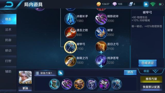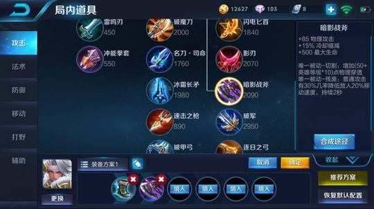 前期钟无艳只需要一个暗影战斧来增加自己的物理攻击加强伤害就可以了,在加上自带的百穿铭文,伤害在前期谁都扛不住。 半肉半输出出装
