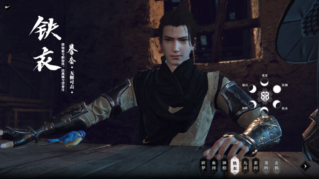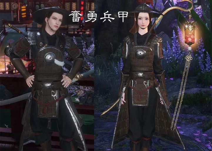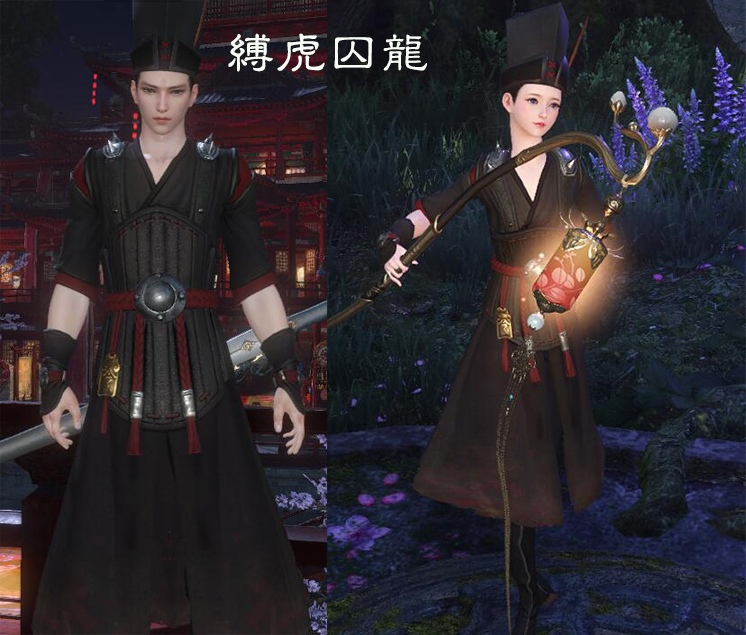门派外观 看完角色选择界面,接着带大家看看【角色制作】界面中的门派外观!目前一个门派各有两套外观。 【铁衣】,游戏内唯一MT,以铠甲为主。主要色调是橙色。 【血河】,近战之一,也是以麒麟铠甲为主,主要色调红色。 【碎梦】,近战之一,特有的披风是不是显得更酷一点?主要色调褐色。 【神相】,远程输出之一,两鬓有须须,服饰以交领襦裙为主,再加上衣服上的竹子元素和武器长琴,妥妥的竹林雅士风!!门派色调丹青色,(???) 男 女 【九灵】,远程输出之一,苗疆异域高冷御姐风,门派色调以紫色为主。 【素问】,唯一治疗,清新淡雅的妆容搭配素雅的嫩青色,广大妹子玩家的福音!!! 看完门派特色服饰,咱们来看看游戏内的商城服饰又有什么不同。