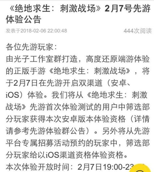 腾讯的两款《绝地求生》正版手游(刺激战场与全军出击),最近开启了第二轮内测。其中,由光子团队制作的《绝地求生:刺激战场》将在今天开启首轮的iOS测试。 绝地求生刺激战场专区:http://sy.yzz.cn/jdqscjzc/ 很多幸运的玩家已经收到了由运营团队发送的内测短信,但是大部分玩家依旧无缘首测。 那么刺激战场什么时候上线?年前能玩上吗?现在看来,貌似很有可能玩上《绝地求生:刺激战场》!! 首先,网上爆出了2月9日正式上架的消息,但是最终消息来源不太官方,小胖就没有太关注,但是在今天的“应用宝”里竟然也出现了相应的日期,这应该是官方的实锤了吧? 既然如此的话,iOS版本在近两天进行测试完毕后,在9号全平台上线?这个步骤在安卓上是可行的,但是在iOS上可能行不通,因为App Store的审核机制是有一定的时间周期的,除非光子很早就把之前的版本提交了审核,才会在2月9日全平台正式上架,最终通过热更新(游戏内更新)的方式进行下载最新的内容。 不管如何,看来全民可玩的日子已经不远了,至于天美的《绝地求生:全军出击》是否会在同一天上架,目前还不得而知,因为在应用宝上看到的《绝地求生:全军出击》依旧没有标明时间! 至于刺激战场与全军出击这两款该玩哪个?肯定都下载啊,到时候感觉哪款吃鸡比较舒服,就玩哪个!不冲突! 了解更多相关信息,请前往http://sy.yzz.cn/jdqscjzc/ |
